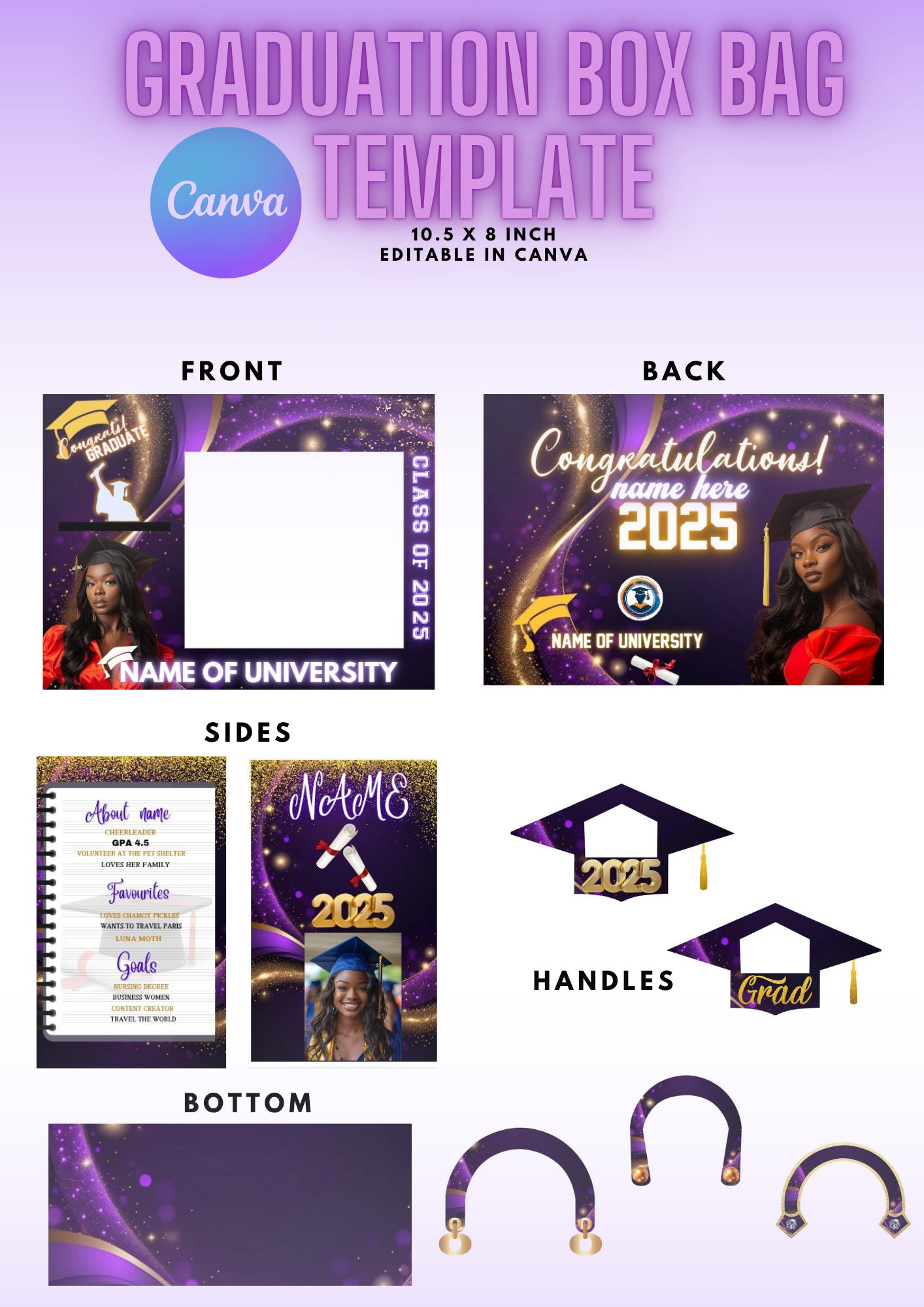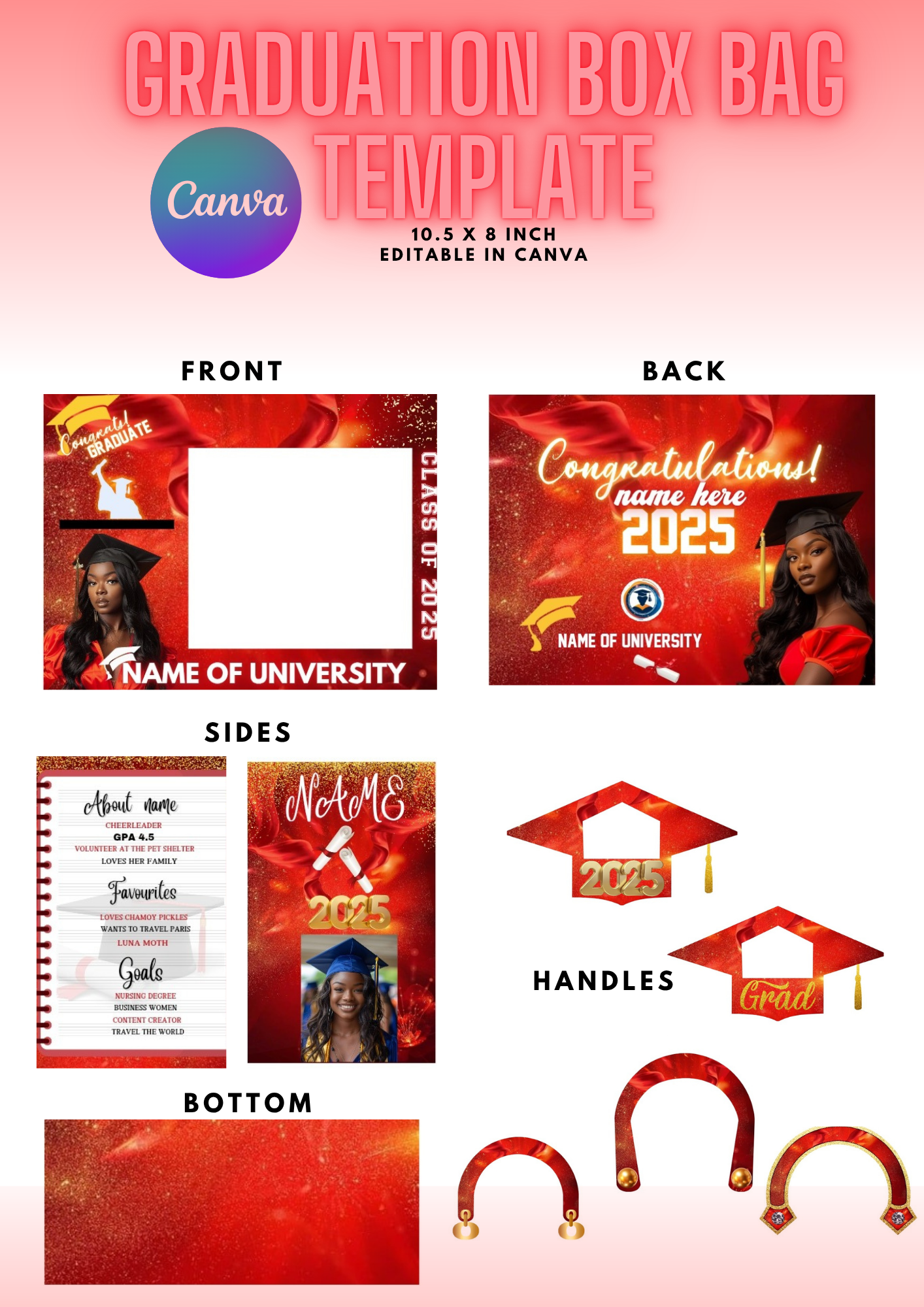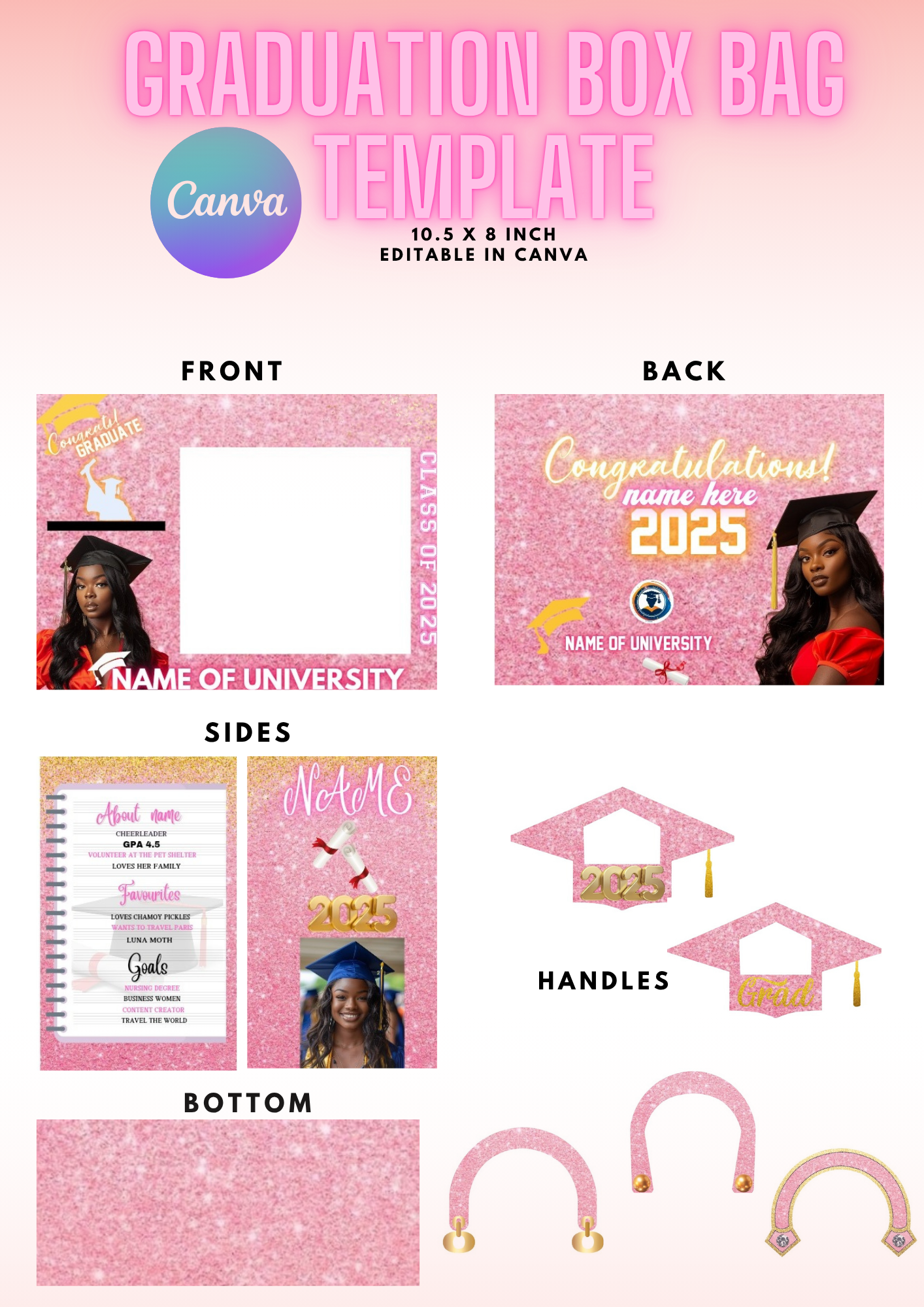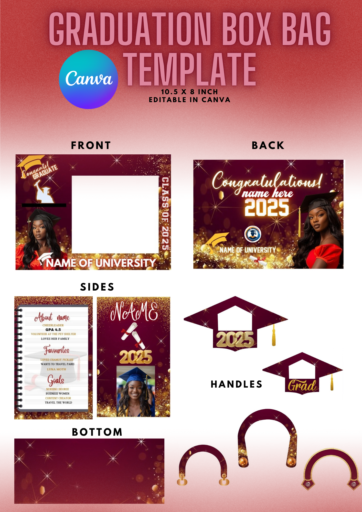 Celebrate your graduate in a fun and creative way with this Graduation Handbag Box Template featuring a built-in money slot! This digital file is perfect for DIYers — just print on A4-sized sticker paper (11.7 x 8.3 inches), apply to foam board, and assemble a sturdy, stylish gift box ready to hold cash gifts, small treats, or notes.