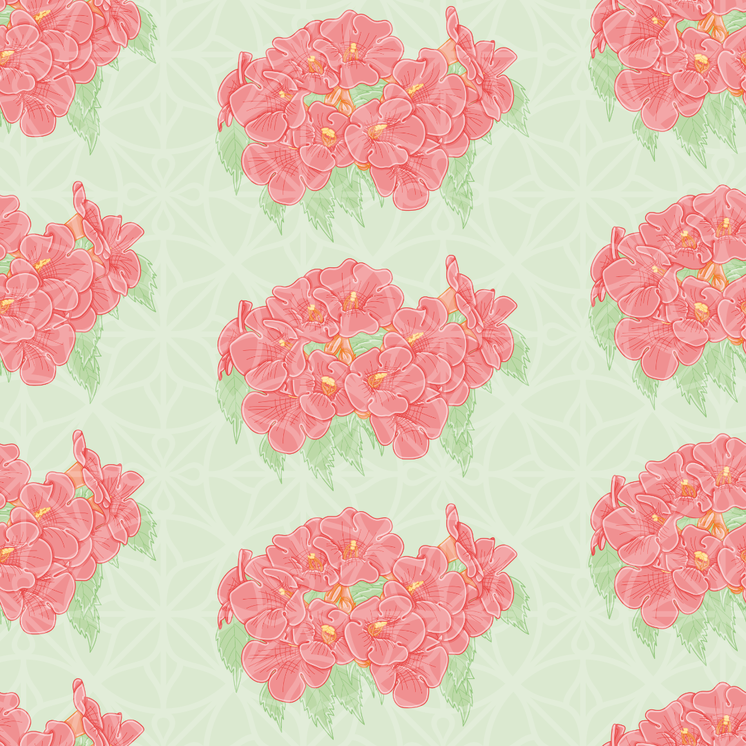 Trumpet Vine Flower Vector Repeat Pattern