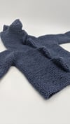 We start with a provisional cast on at the neckline and work top down with a raglan construction. After knitting the body, stitches are picked up for the sleeves. Stitches are picked up the provisional cast on and worked up from the neckline for the hood. After that comes the fun part! Using yarn held double to give some structure, we pick up “purl bumps” and work spines from the middle of the hood right down to the hem. Instructions are given for 17 sizes from newborn to 150 cm/60” chest. We include instructions for optional waist and sleeve shaping, and for two sizes of buttonhole if you don’t like toggles.