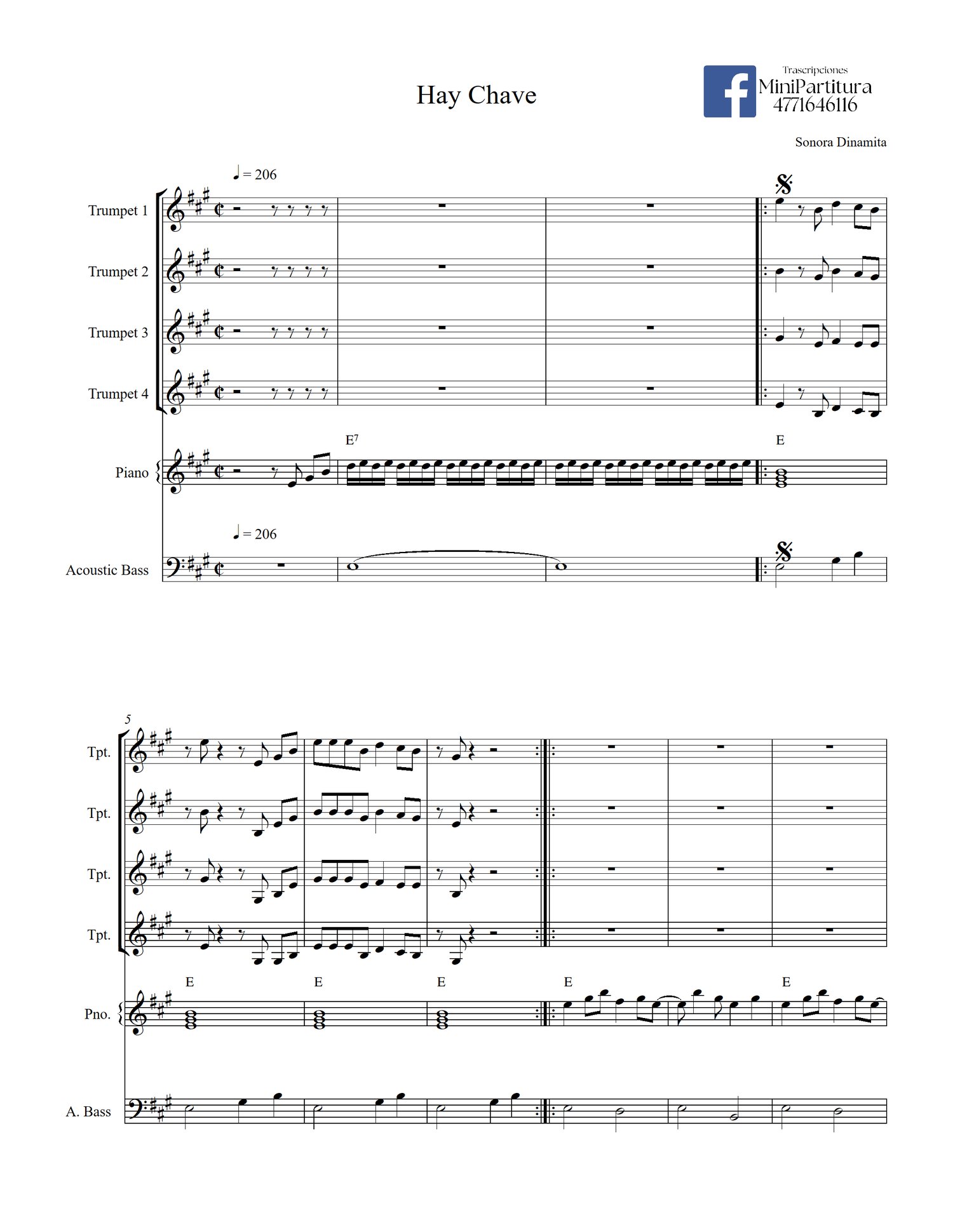 Partitura de la canción (Ay Chave - Sonora Dinamita) Para Trompeta 1, 2, 3, 4, Piano y Bajo