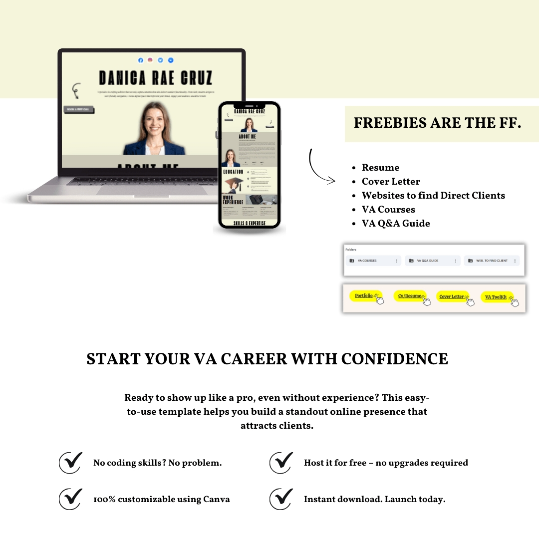 - FREE: Resume, Cover Letter, Websites to find Direct Clients, VA Courses, and VA Q&A Guide.