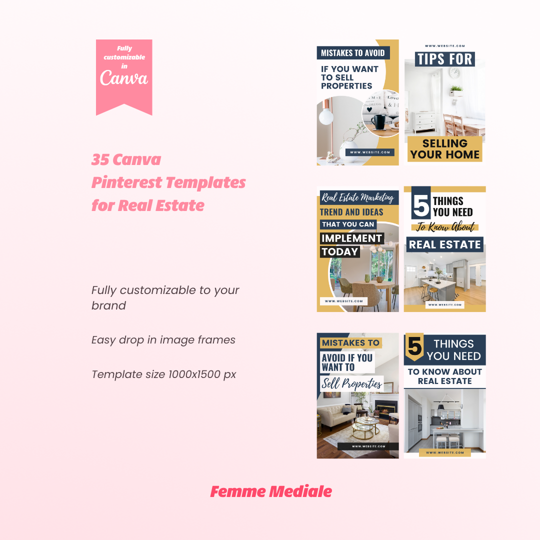 As a real estate agent, you know how challenging it can be to consistently create professional, eye-catching content that attracts buyers and sellers. Time is limited, and graphic design isn’t always your expertise. That’s where these 35 Real Estate Pinterest Templates come in.