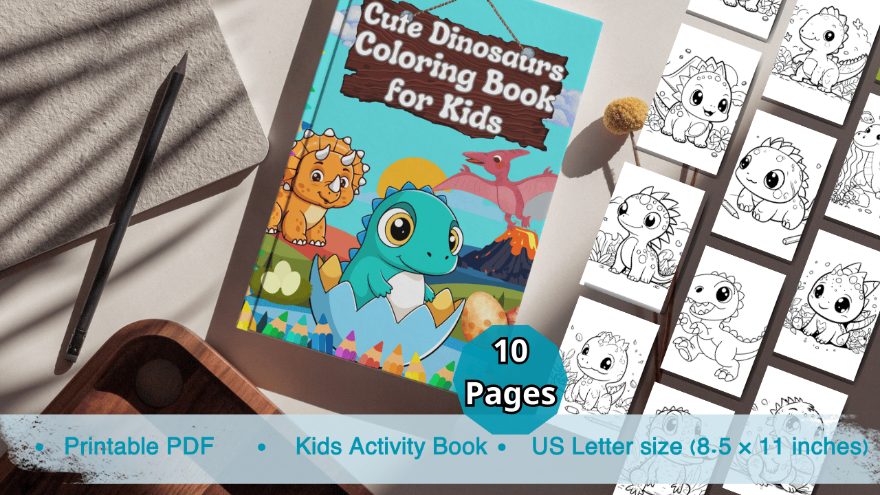 This book includes 10 high-quality coloring pages with adorable dinosaurs and simple designs that are easy to color. Perfect for toddlers and preschool kids.