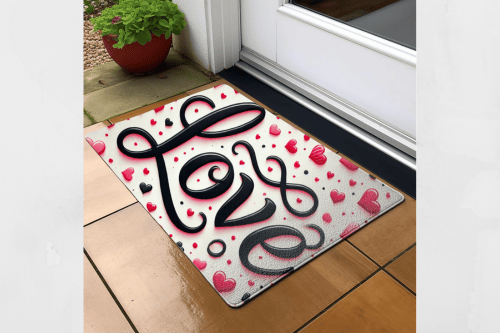 Sublimation Floor Mat - "Love" Word Surrounded by Hearts