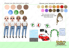 three different skin tones, three eye colours and 15 hair colours