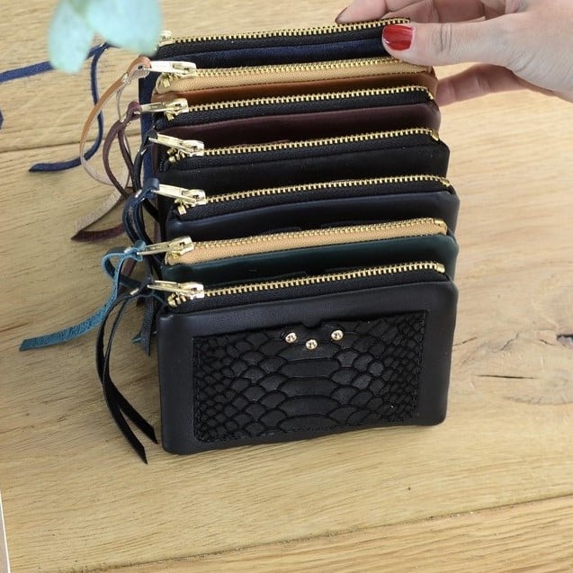 Porte-monnaie avec porte-cartes en cuir - différents coloris