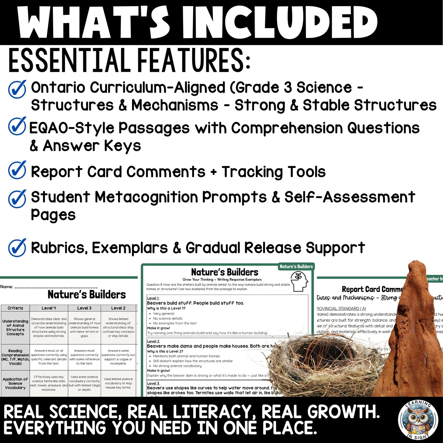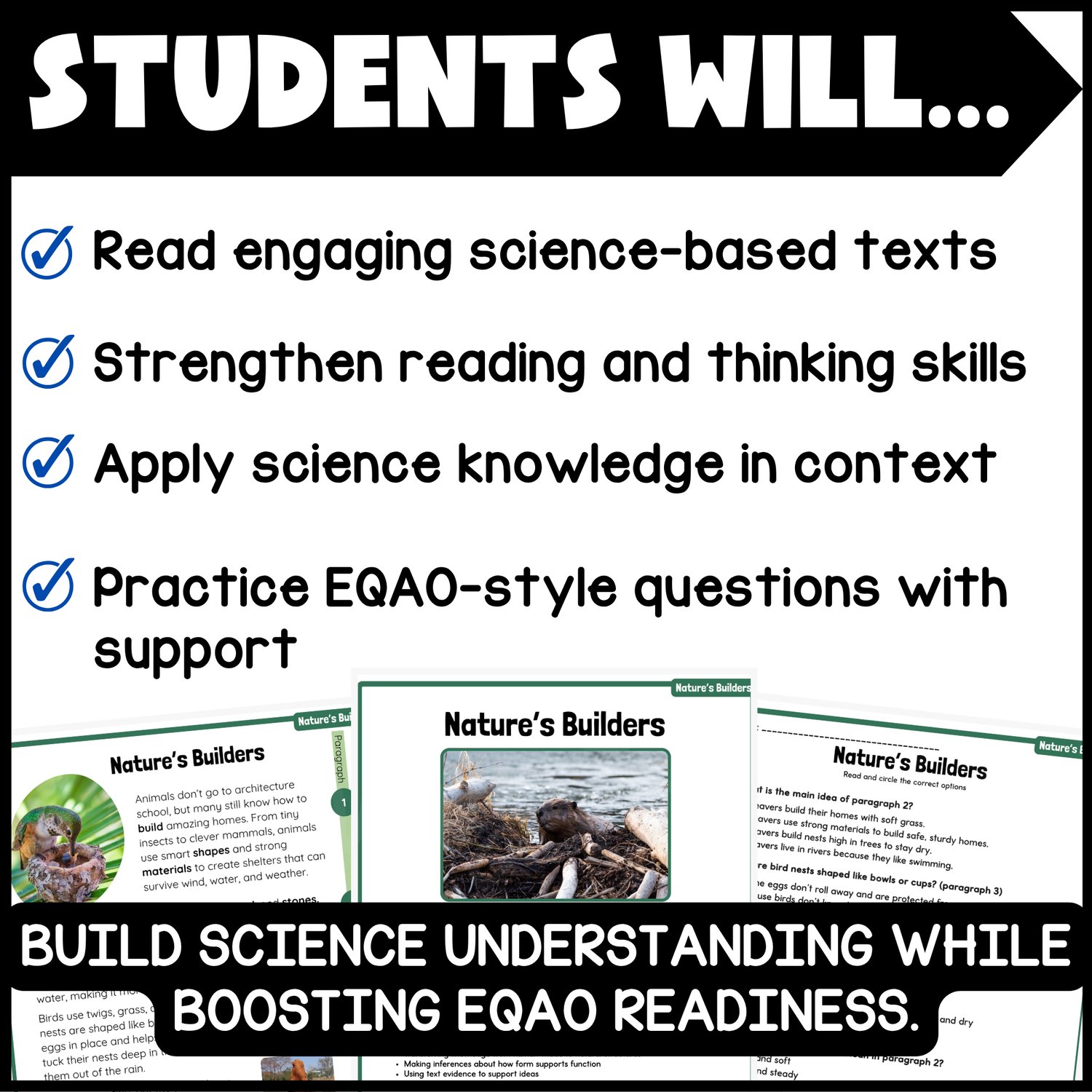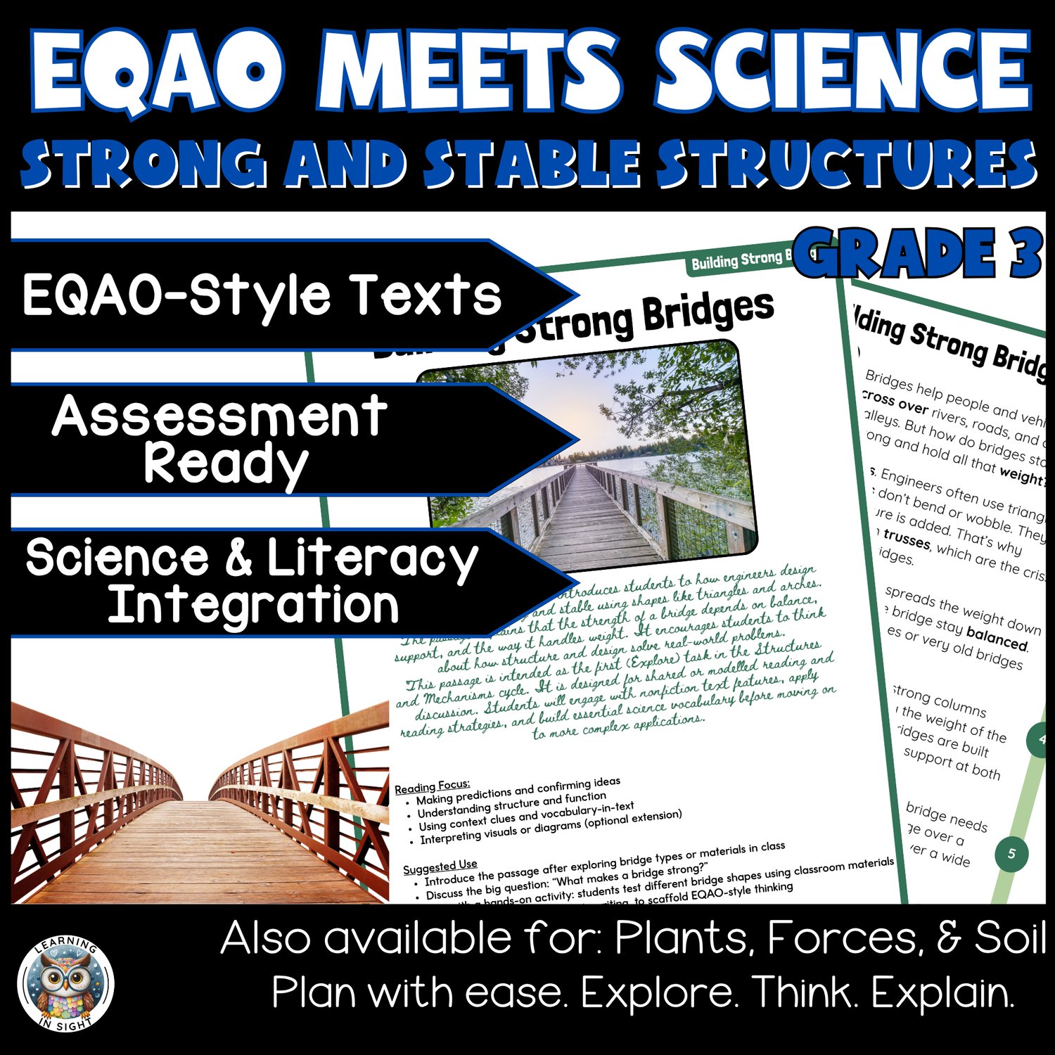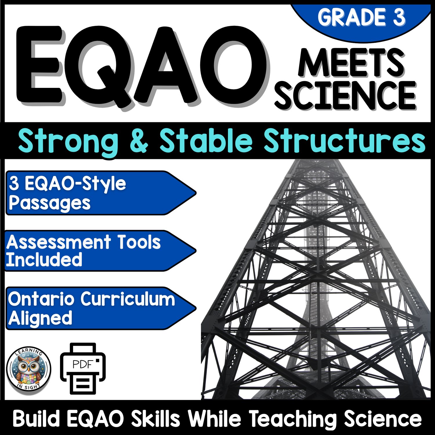 Aligned to the Strong and Stable Structures strand of the Ontario Grade 3 Science curriculum, this resource supports students as they explore how buildings and bridges are designed to withstand forces. With reading passages and EQAO-style questions, learners practice applying knowledge while progressing through a gradual release model that builds their skills step by step.