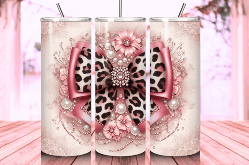 Create a tumbler that’s as stylish and soft as it is bold with this Pink Girl Coquette Leopard Bow Tumbler Wrap!