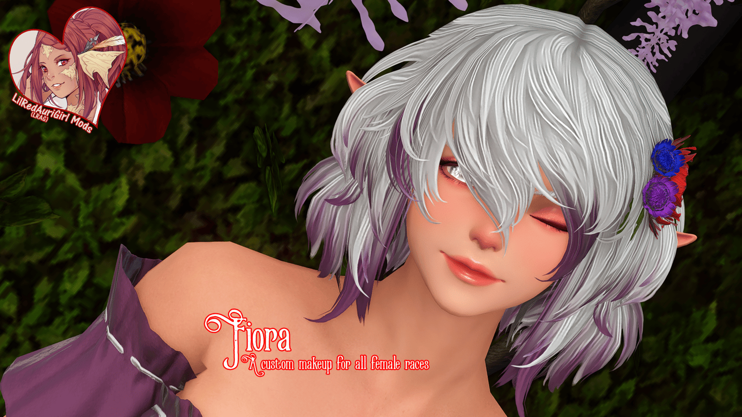 "Fiora" is a soft faerie-like makeup in pinks and pastels that I designed for my faeling character and then expanded to other races.