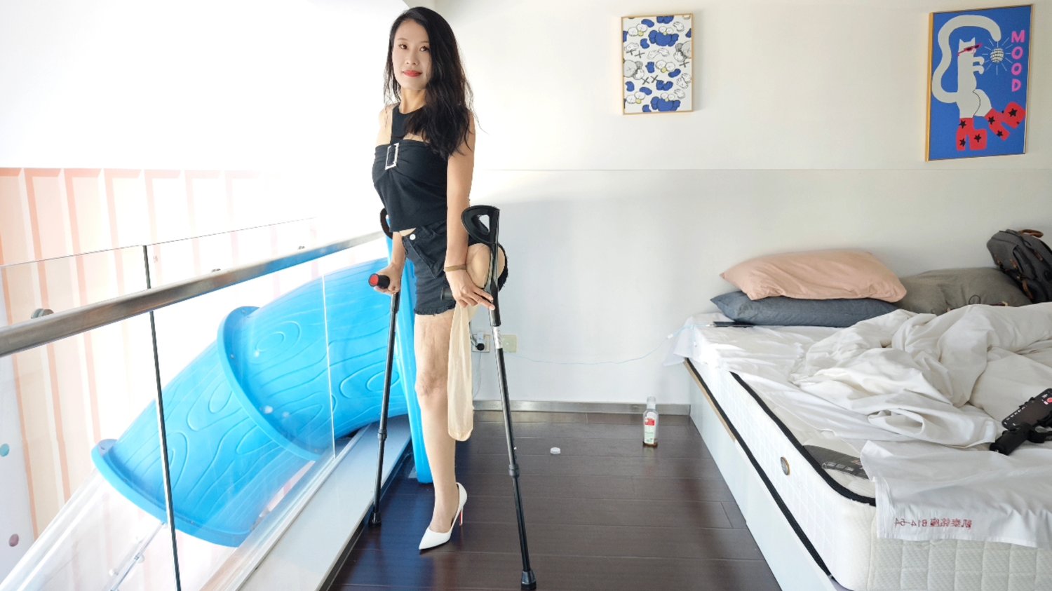 Today, Ayla demonstrated how she, as a disabled person, wears stockings and showed her residual limb wounds. Although these wounds once caused her great pain, she has completely overcome them. She was happily playing in the playground, and her joy was shared with everyone.