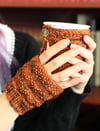 The two sizes are created by changing the yarn weight. Both weights use the exact same pattern directions. These mitts were done with a slightly tighter gauge than typical with the DK using a US 4, and the worsted weight using a US 6.