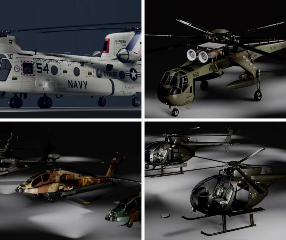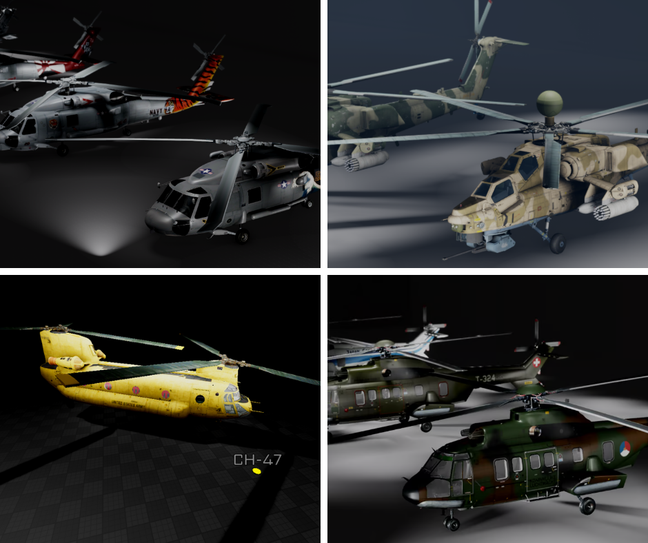 Contain AS332 Pack, EC-725, CH-54, A109EOA, Script.