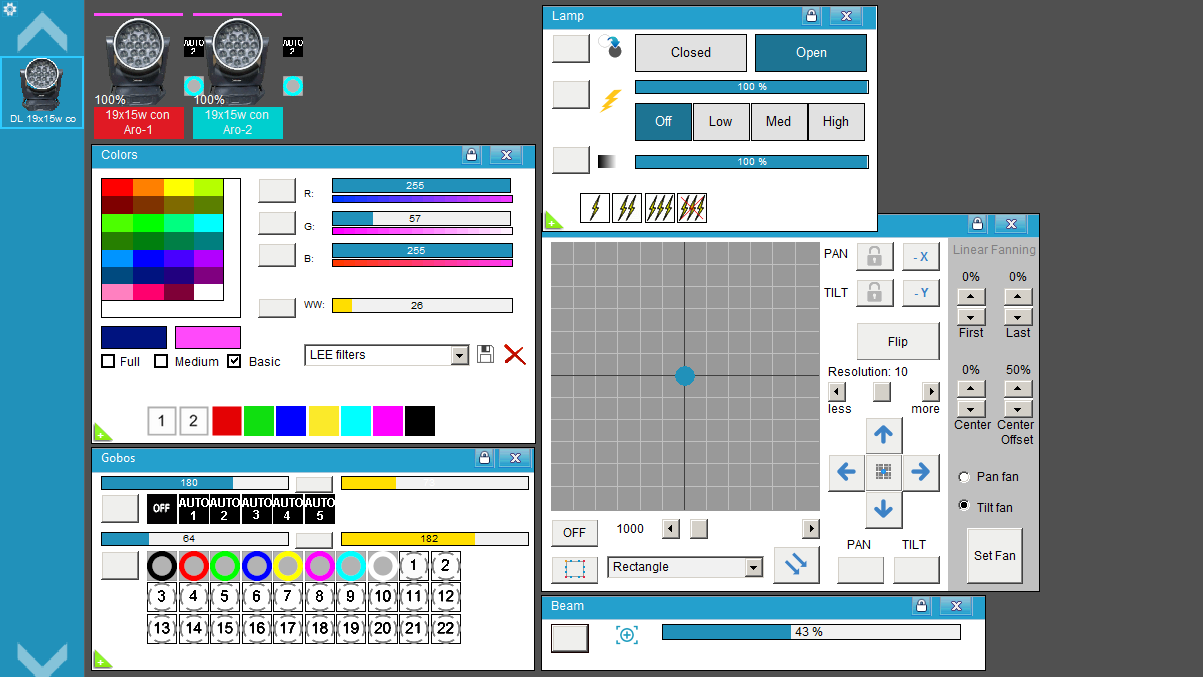 Librería para Freestyler DMX del Cabezal 19x15w con Aro Led, de Digi-Light ( 17-25CH ).