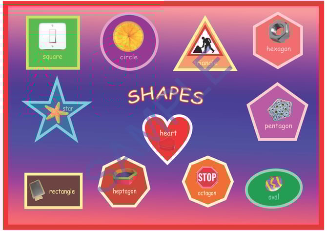 One A3 Colour Poster about the shapes . Also a black and white copy .Suitable for classroom display . Early Years, ESL, EFL, SEN.