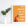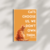 Embrace the wisdom of feline independence with this stunning digital cat wall art featuring the quote: "Cats choose us, we don't own them." by Kristin Cast. This artwork captures the essence of a cat’s free spirit, making it the perfect addition to any cat lover's home or office.