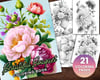 21 Flower Bouquet Collection Coloring Page, Adults + kids- Instant Download - Grayscale Coloring Page - Gift, Printable PDF, flower art