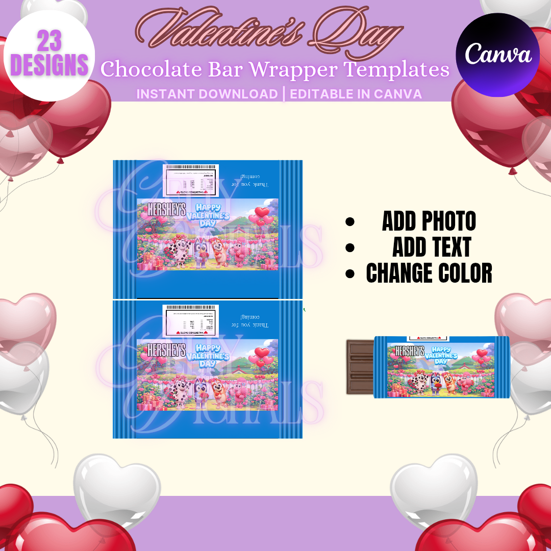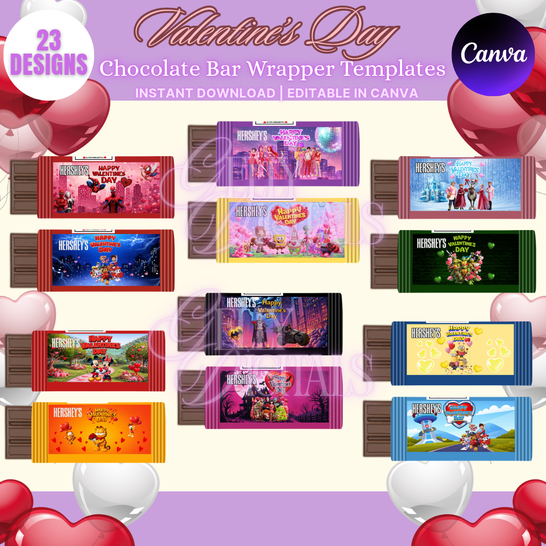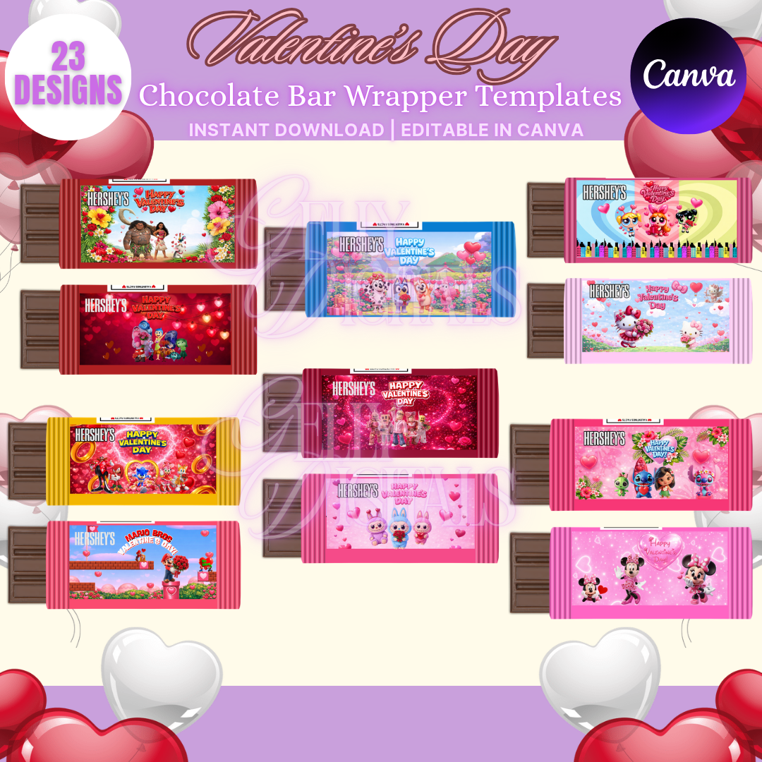 Create adorable and personalized Valentine’s Day chocolate bars with this 23-design Chocolate Bar Wrapper Template Bundle. These templates are fully editable in Canva, making customization quick and easy—even for beginners.