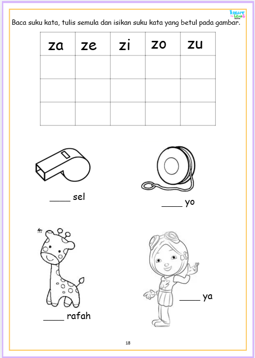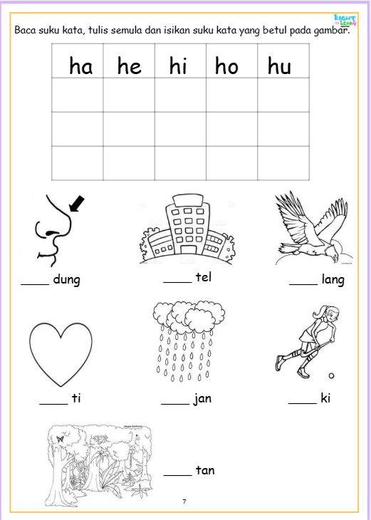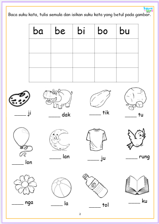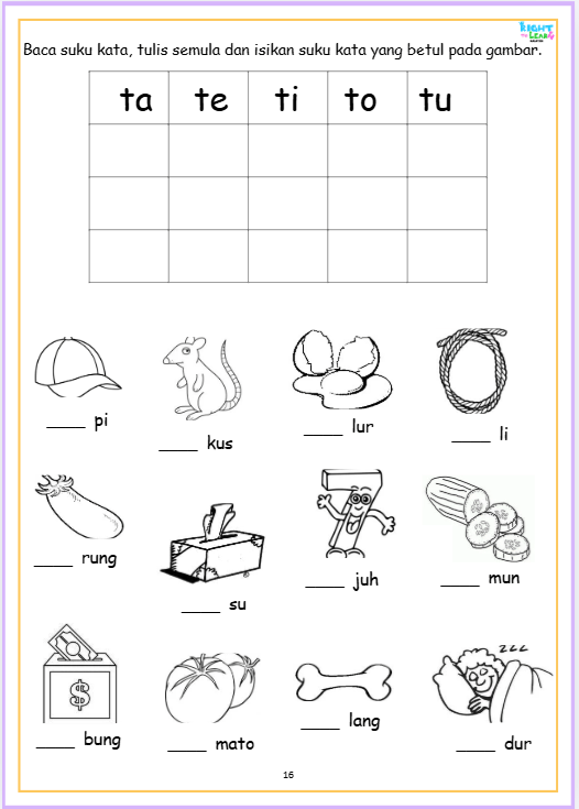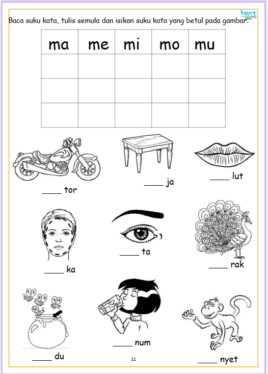 PDF/SOFTCOPY Latihan Suku Kata (KV) 18 pages Vokal dan konsonan. Bahasa Melayu. Malay Mother Tongue Kindergaten