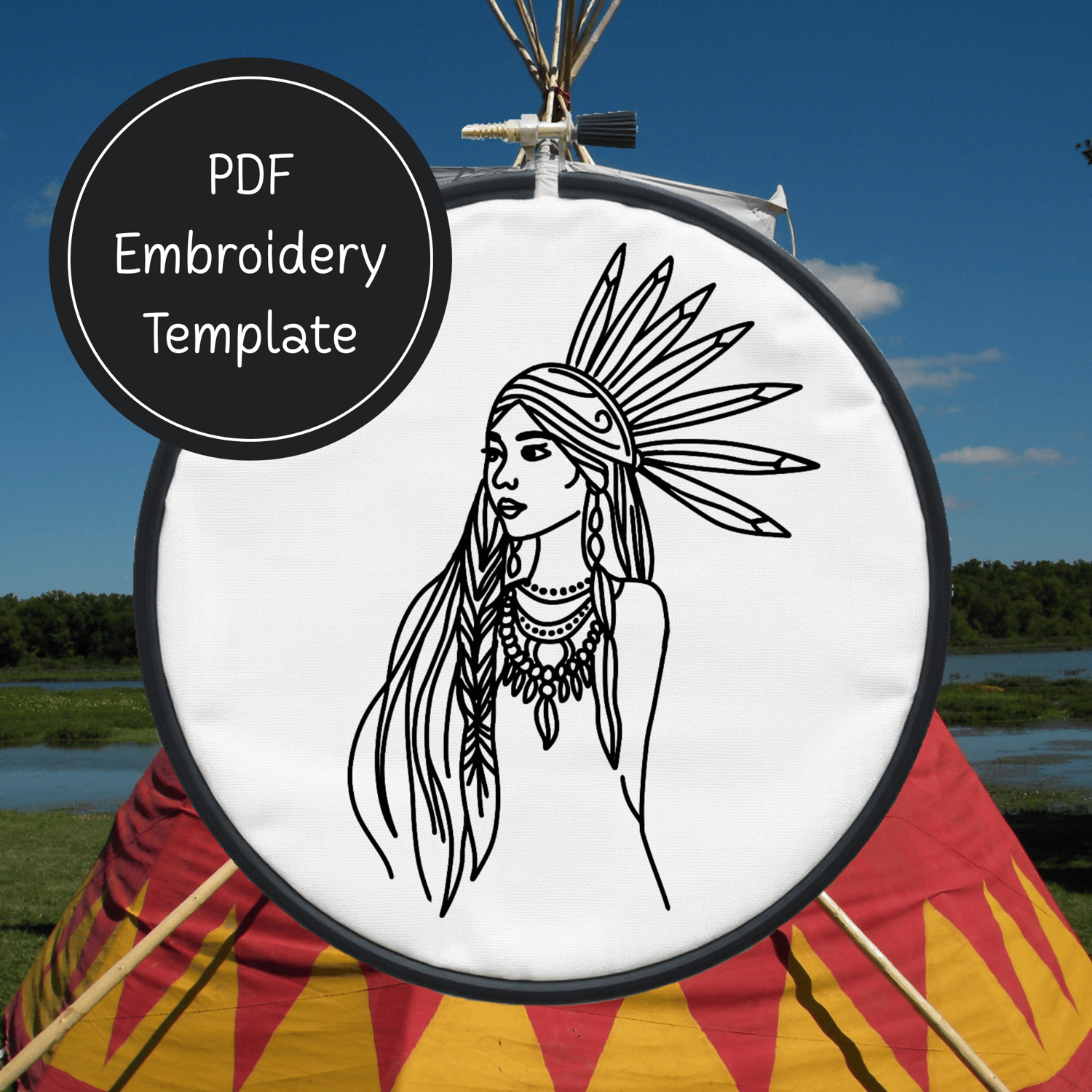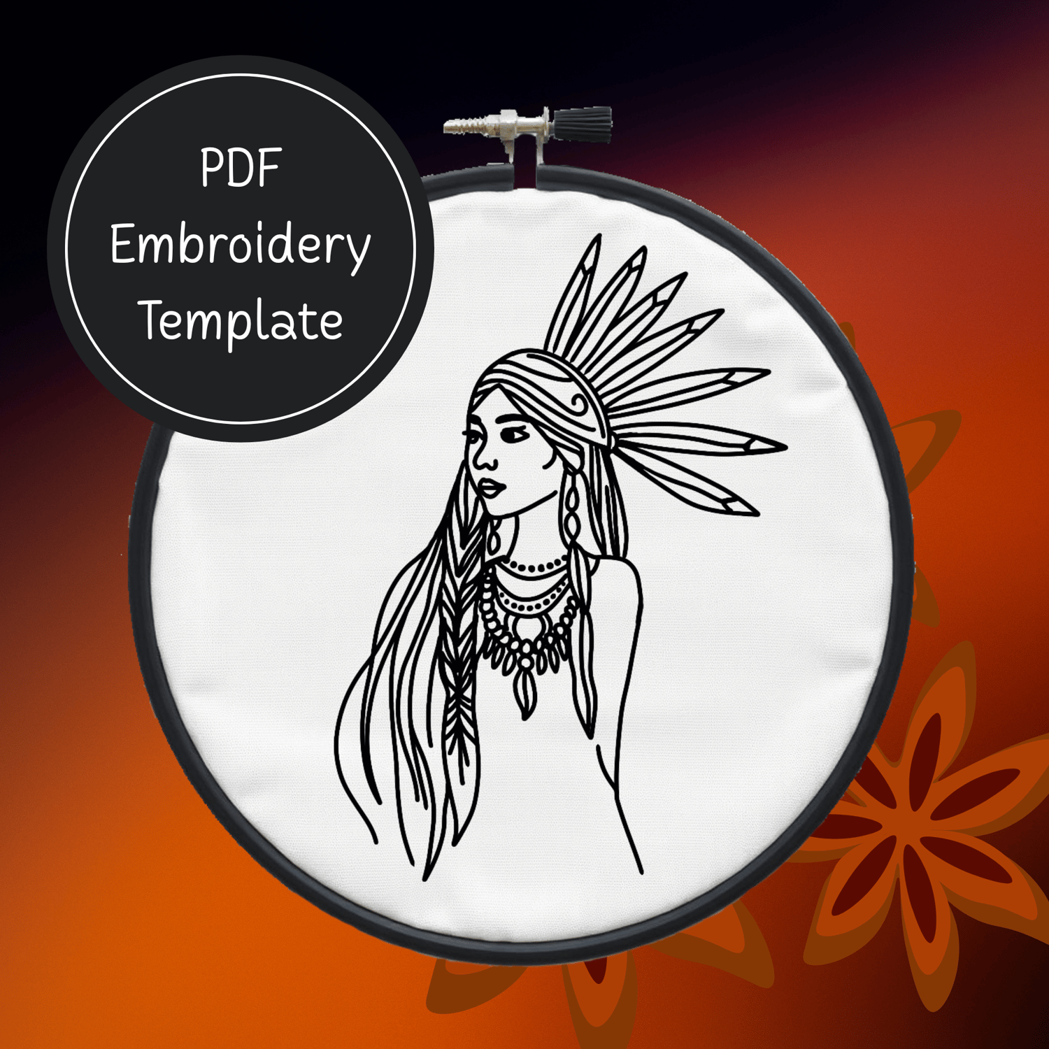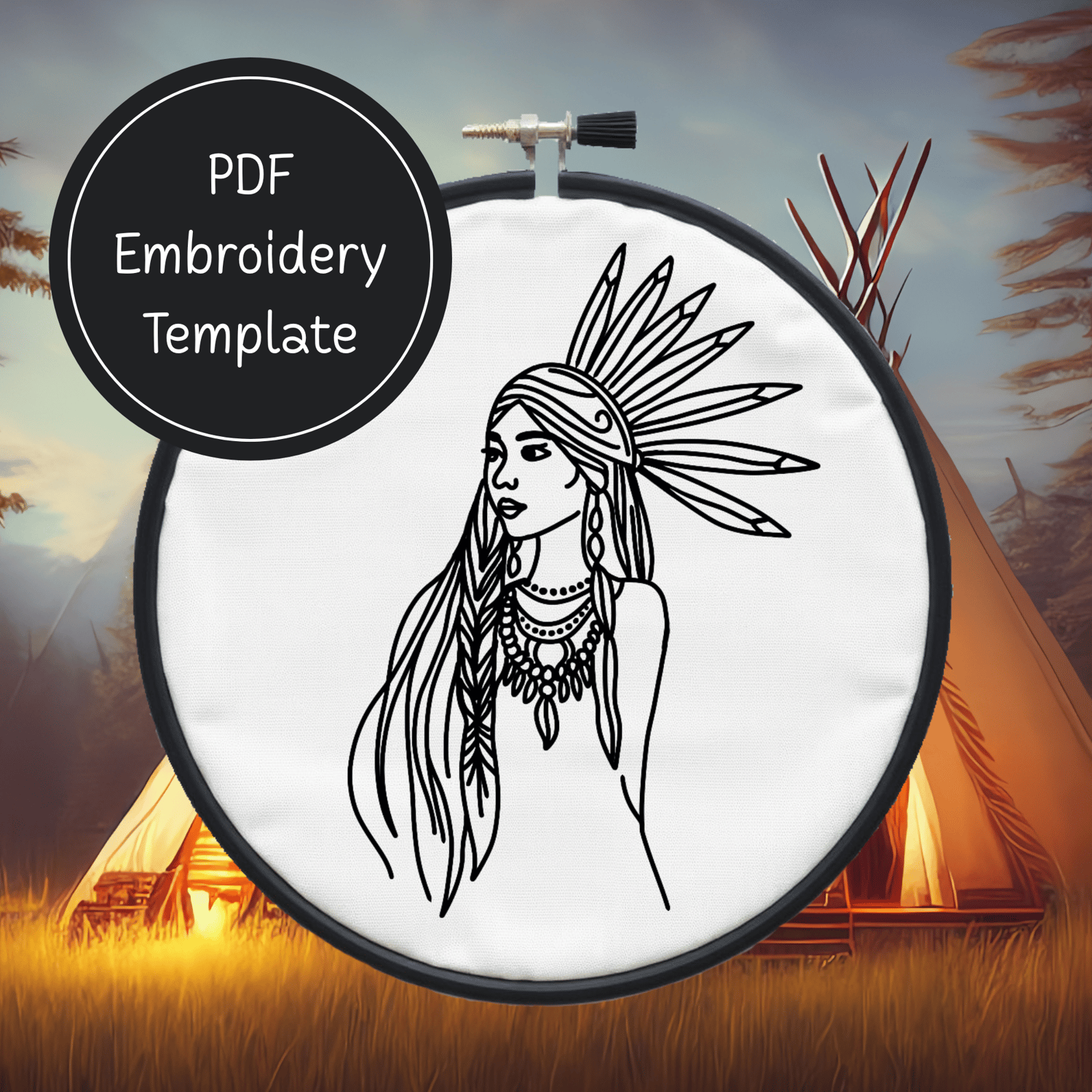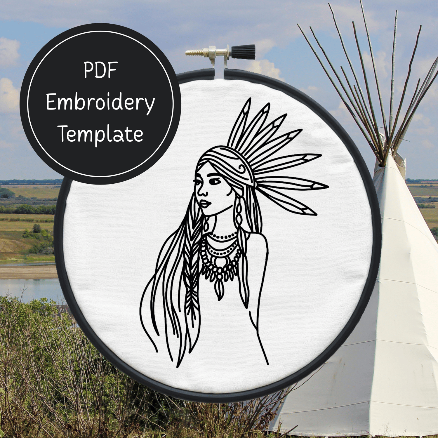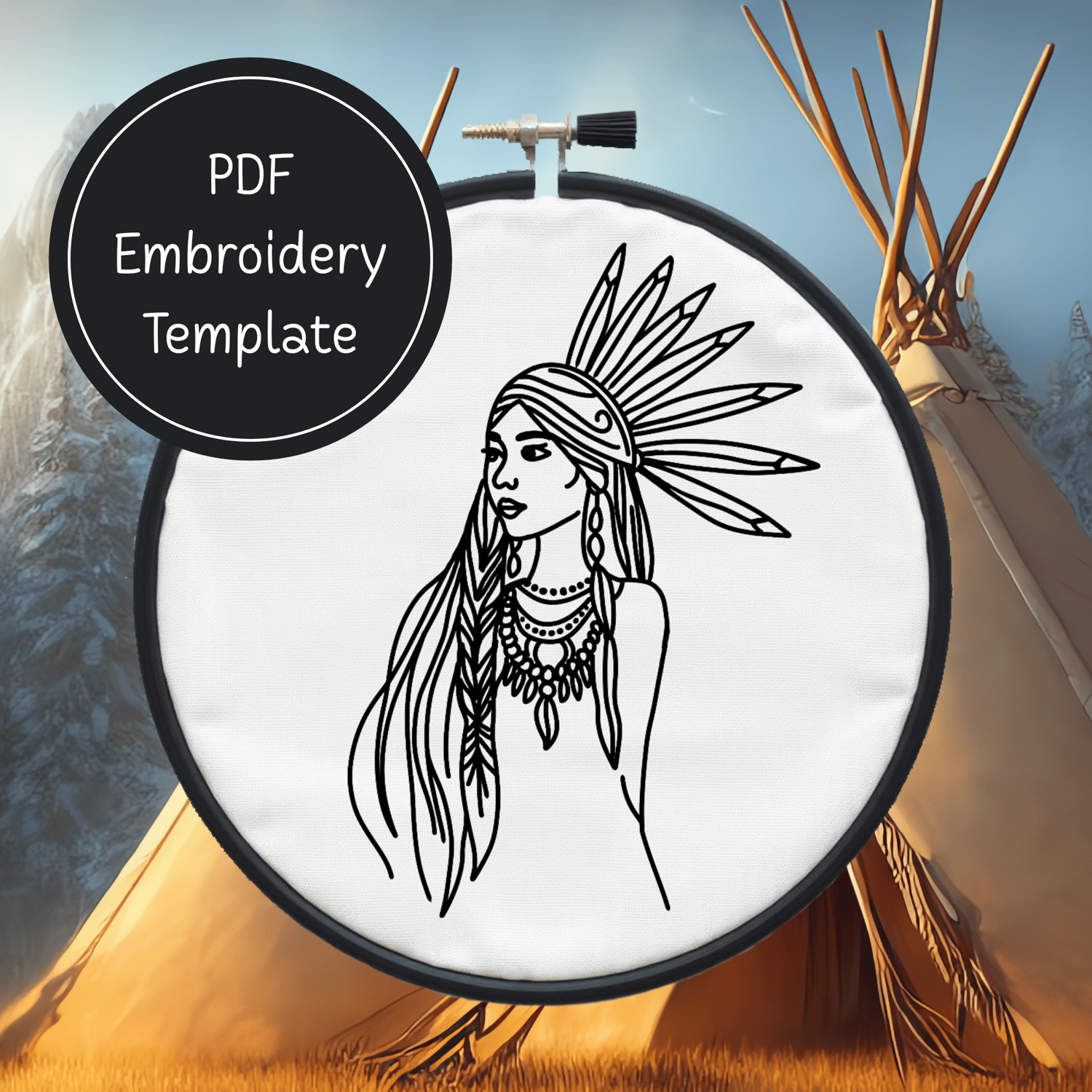 American Indian Girl Hand Embroidery Pattern DIY Embroidery