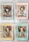 - 4 modelos de interiores de 100 hojas rayadas con diseño y colores a tono de las portadas con sus variantes para imprimir en tamaño A5 para anillado y costura