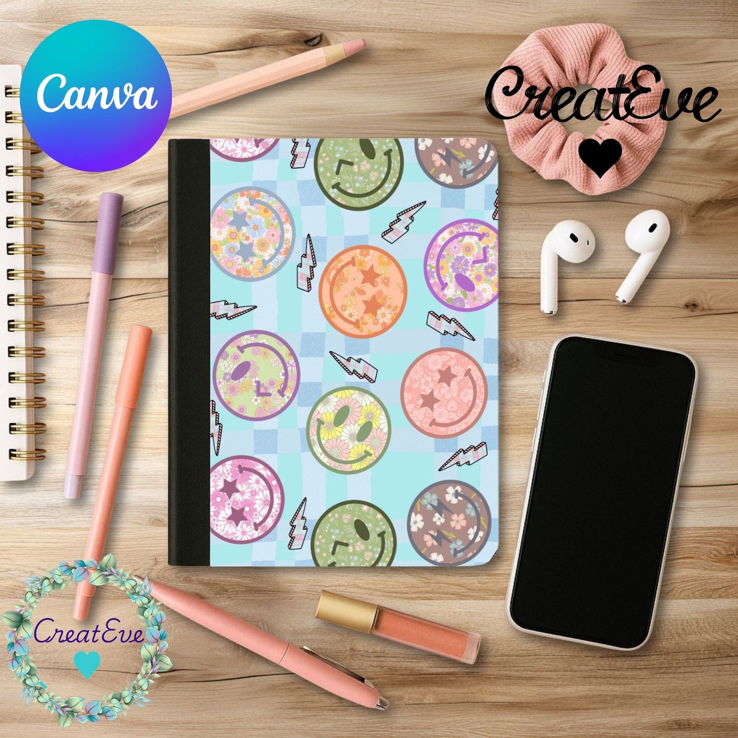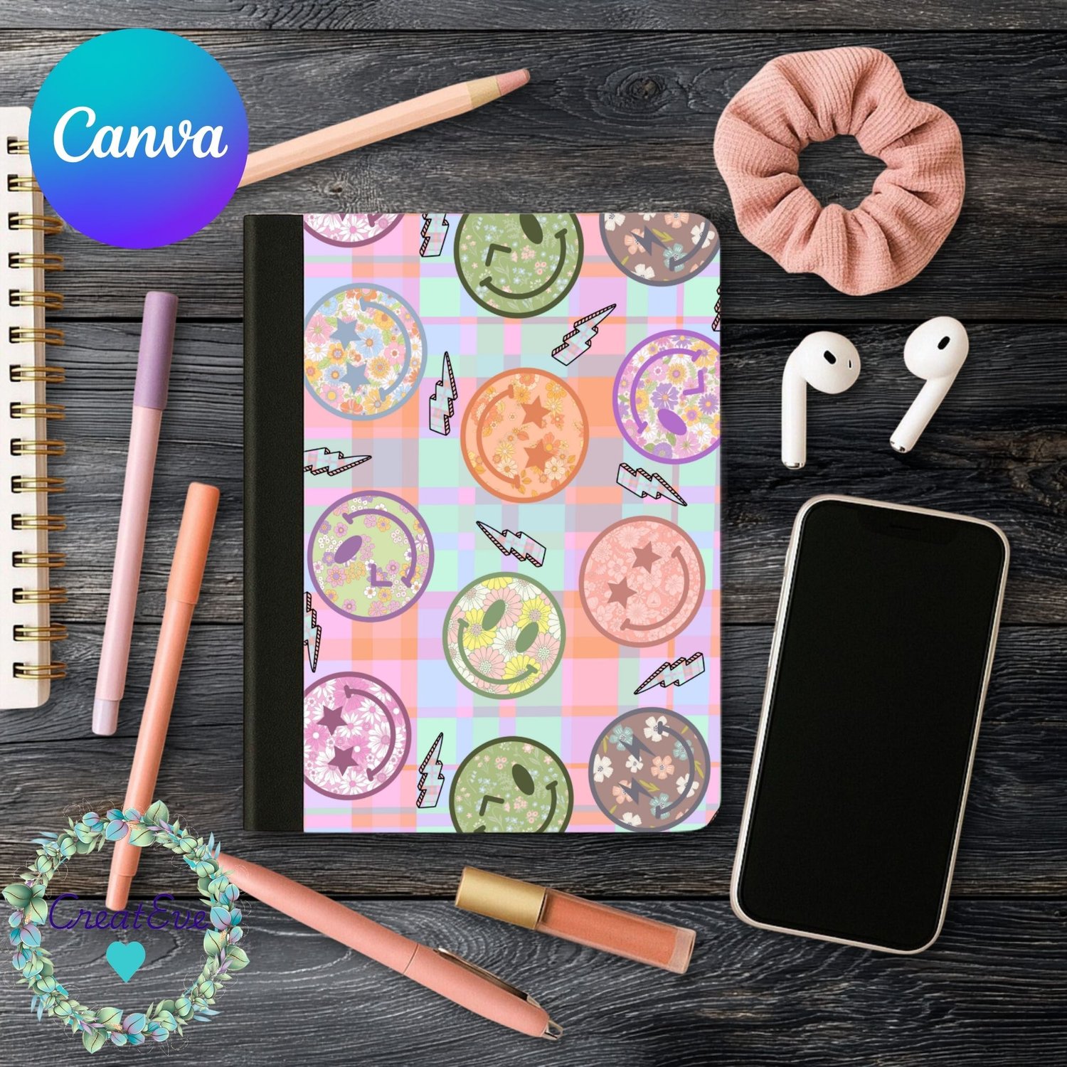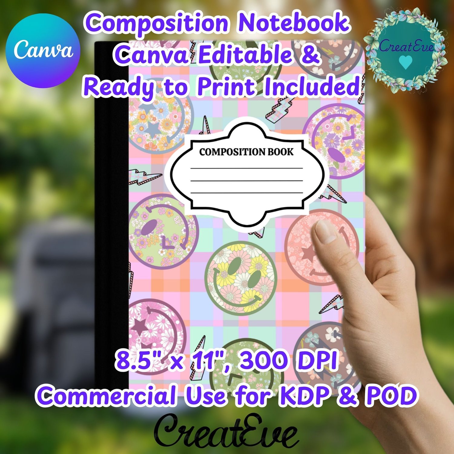 Retro Emoji Composition Notebook Canva Editable & Ready To Print 2 Background PNG Bundle