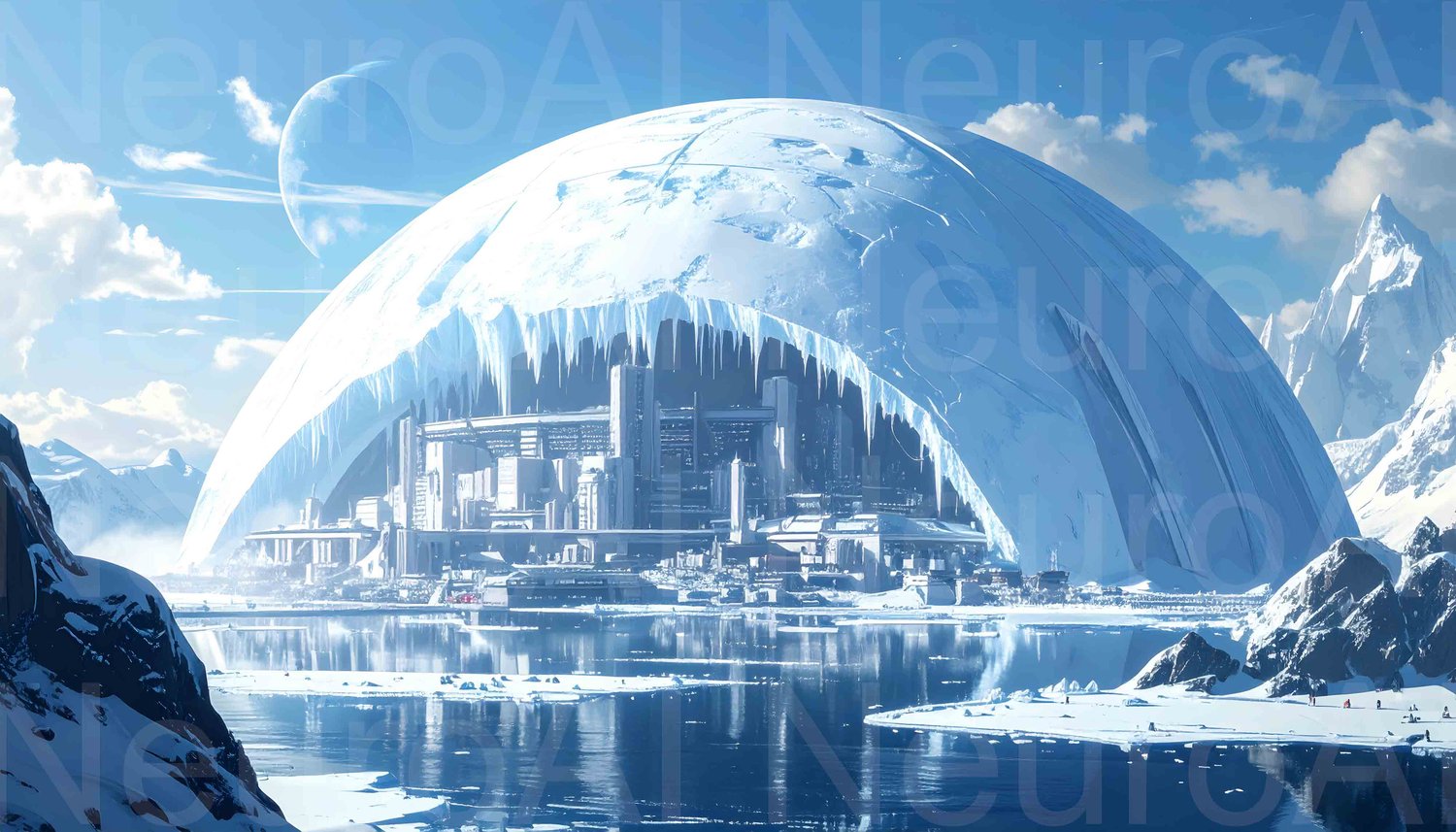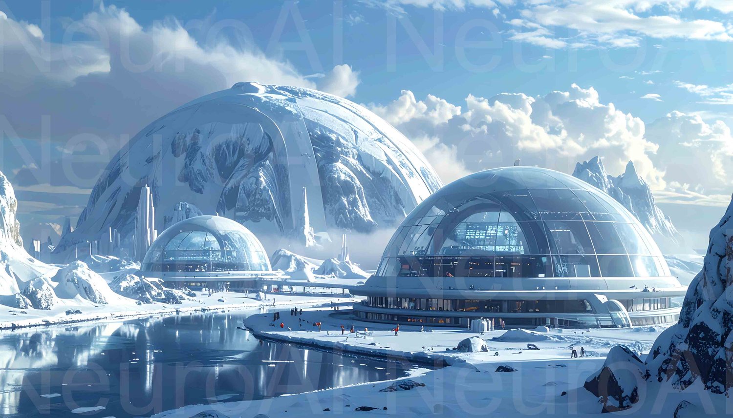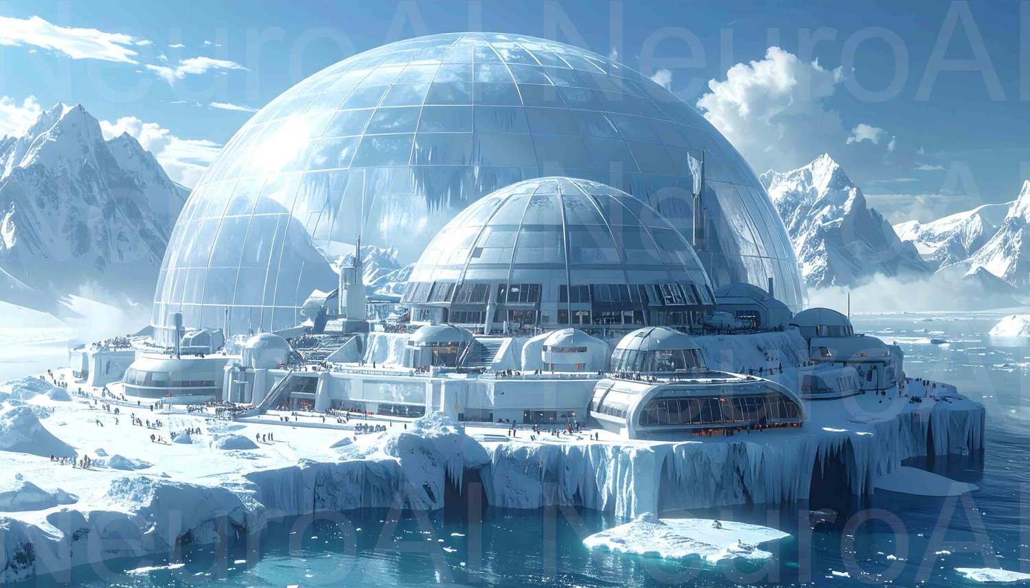 Futuristic research station in arctic landscape
