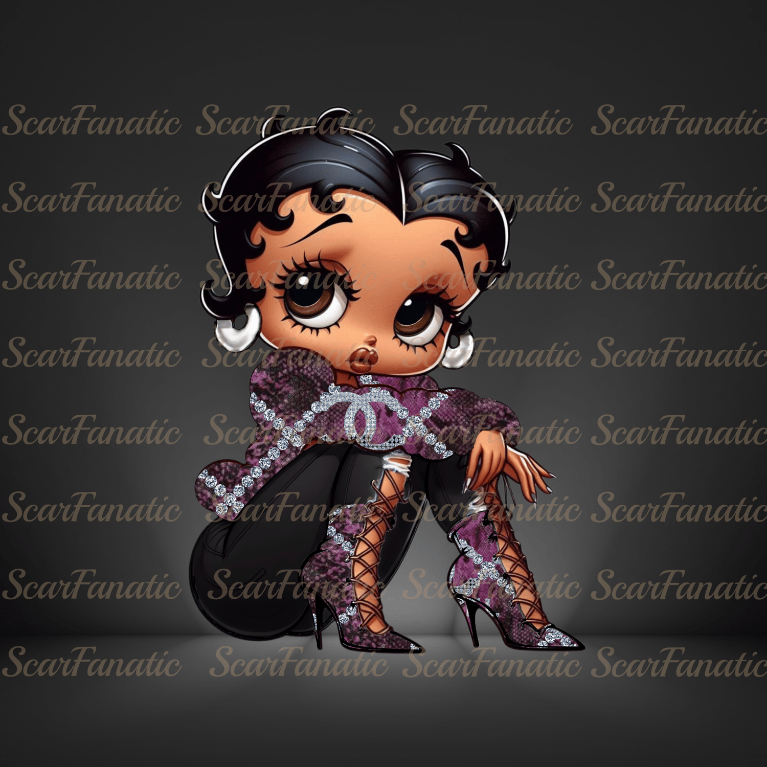 Black Betty Boop in Black and Pink snakeskin jacket and heels, black jeans, high heel boots, Sublimation, PNG, DTF, 300DPI, high resolution