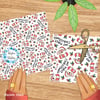Sweet red santas with candy canes, holly berries and hearts.