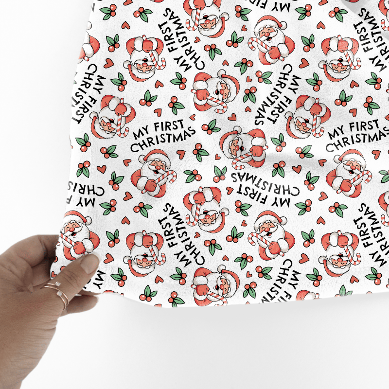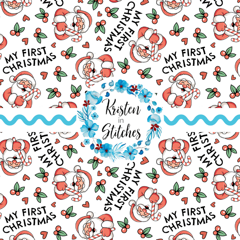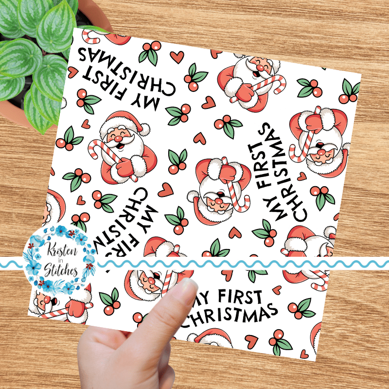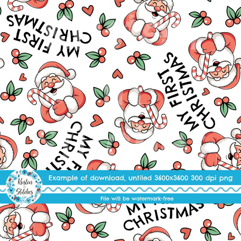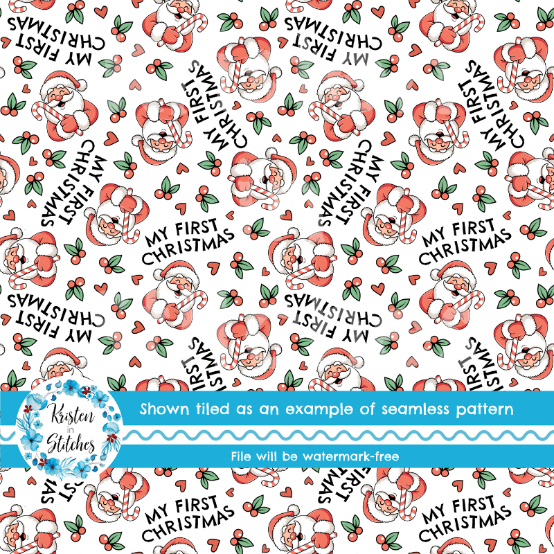 My First Christmas Seamless Pattern, Baby's 1st, Red Santa Claus