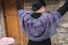 A simple rectangle shawl is transformed into a flowing wrap cinched at the neck with densely gathered ruffles. It’s versatile and it’s both a wrap and outerwear!