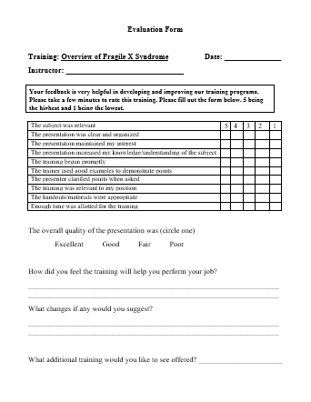 - Document staff readiness for working with individuals with Fragile X Syndrome