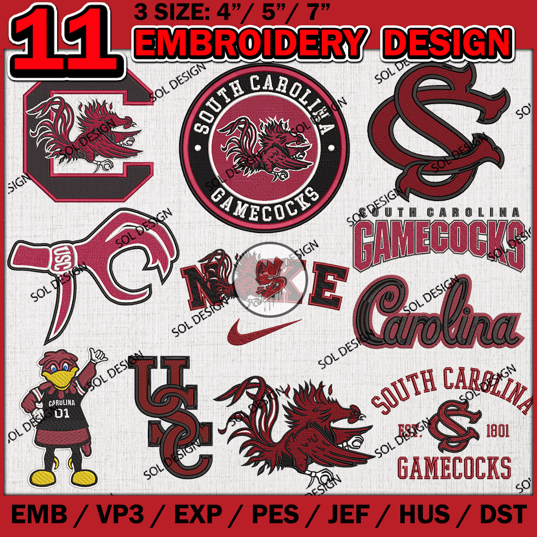 11 South Carolina Gamecocks Bundle Embroidery Files, College Football Embroidery Designs, NCAA South Carolina Gamecocks Machine embroidery Design Bundle, Ncaa South Carolina Logo bundle, Digital Download
