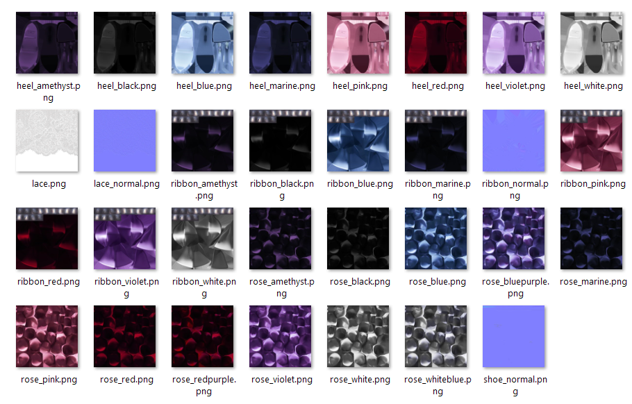 ♡ diffuse & normal map, four materials with 8 different colors