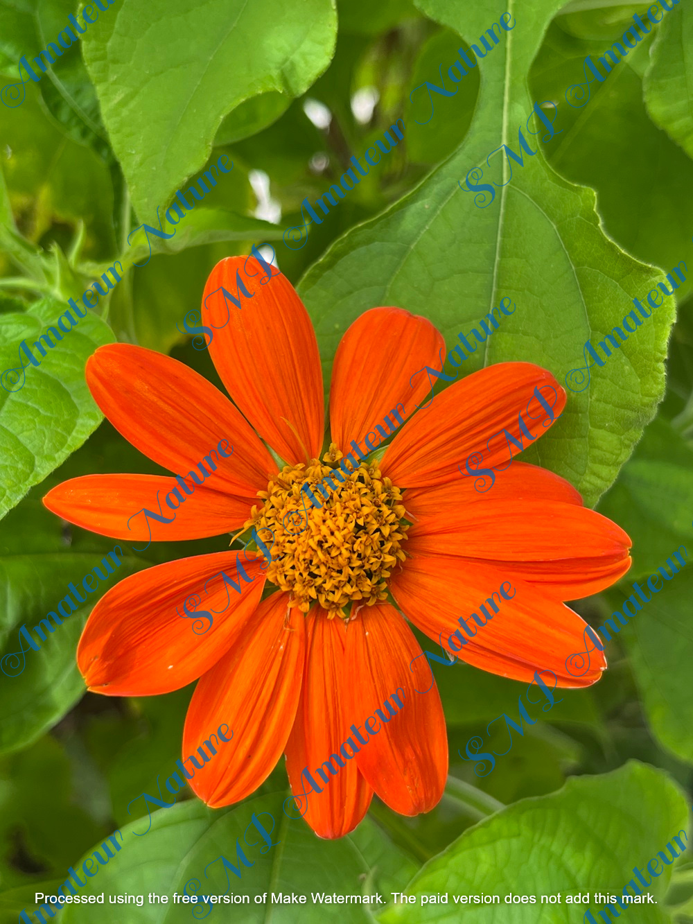 Amateur photograph of a Mexican Sunflower (Tithonia rotundifolia). Image taken in Virginia, USA. Image pixels 3024x4032. Image easily resized as required for buyer needs. Purchase gives image without any watermark.