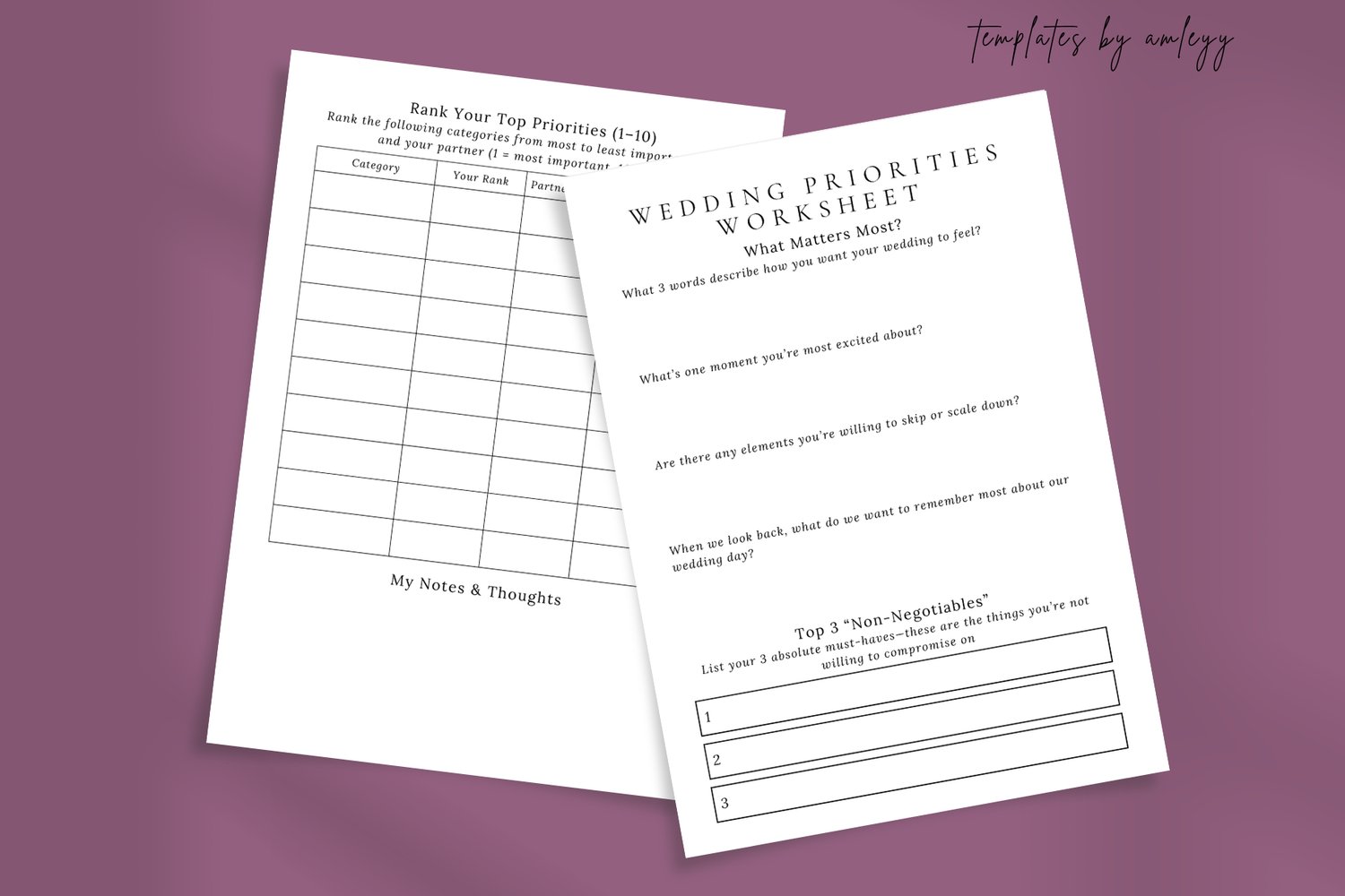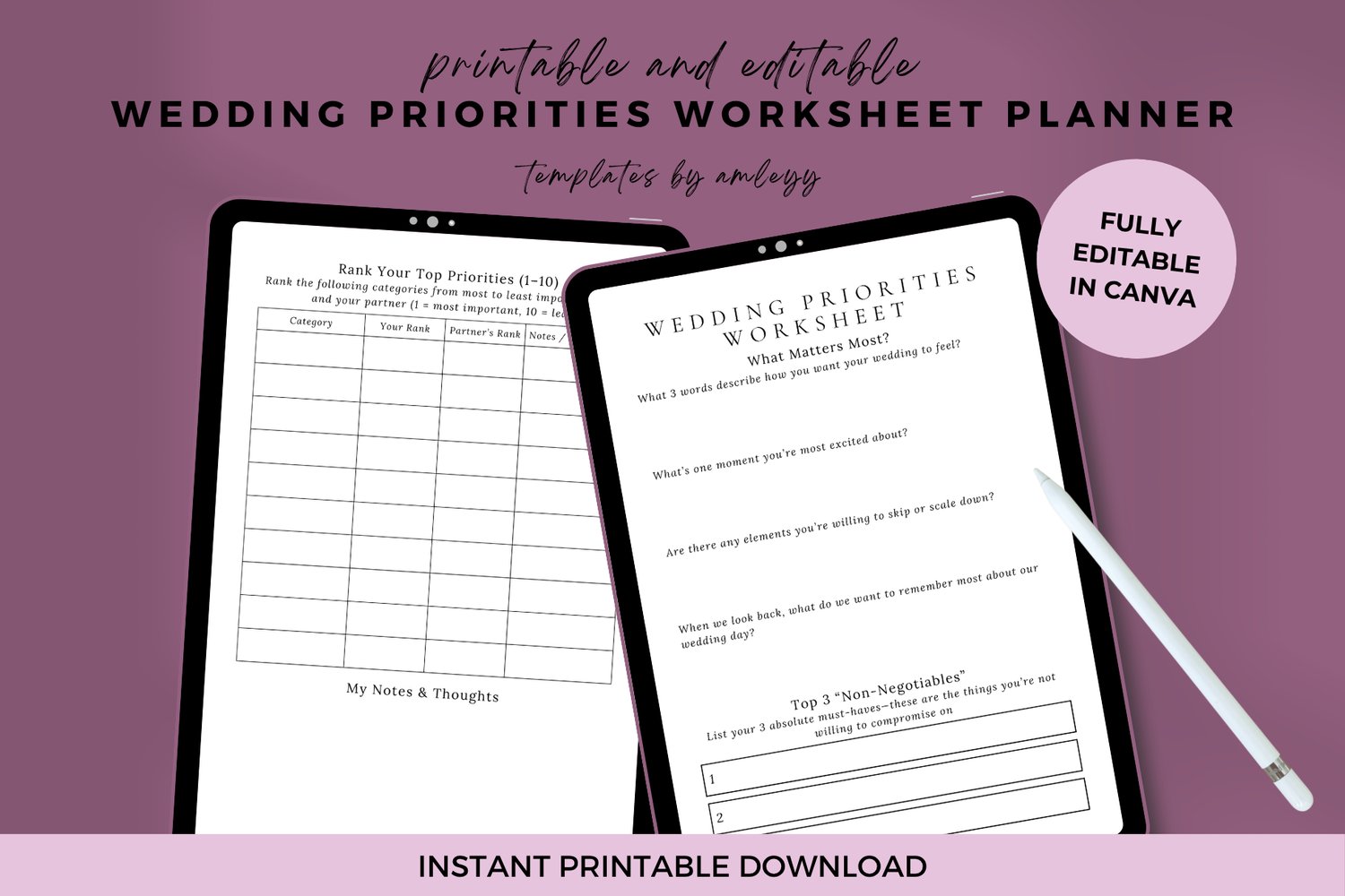 Wedding Priorities Worksheet | Editable Canva Planner Template | Printable PDF for Brides & Wedding Planners