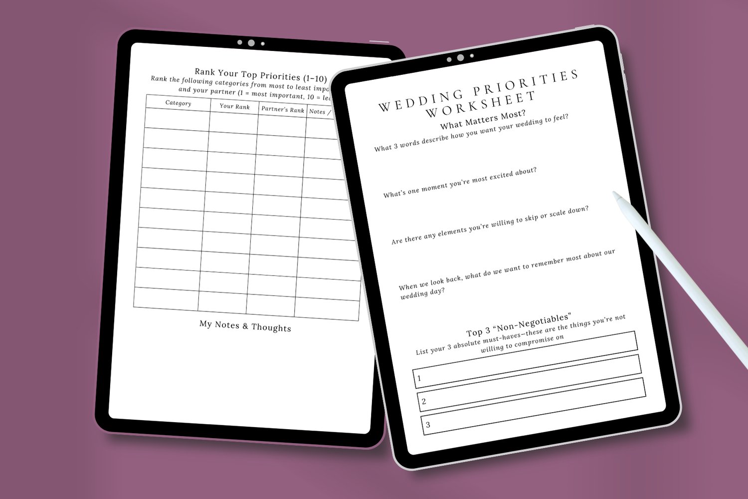 Whether you’re managing vendors, deciding on venues, or budgeting for your perfect dress, this worksheet will help you prioritize your wedding goals without stress.
