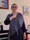Noctula est un châle asymétrique, qui se commence à la pointe et se termine par une bordure en dentelle.