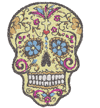 Embroidered meticulously onto a fabric canvas, the photo stitch showcases intricate details of the Catrina's elegant attire, including floral motifs, lace patterns, and ornate accessories. The vibrant colors used in the embroidery pay homage to the celebratory spirit of Dia de los Muertos, where vibrant hues symbolize the joyous remembrance of departed loved ones.