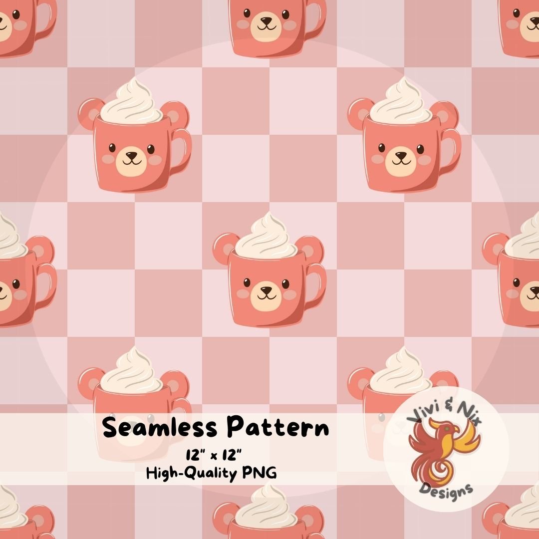 Cozy Valentine Bear Mug Seamless Pattern (PNG)