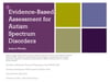 This document discusses evidence-based assessment for autism spectrum disorders. It covers several key points: 1) Early and accurate diagnosis of autism spectrum disorders is important so individuals can receive early intervention services before age 7. However, the average age of diagnosis is around 5 years old. 2) The gold standard measures for assessment include the Autism Diagnostic Interview-Revised, a standardized parent interview, and the Autism Diagnostic Observation Schedule, a standardized direct observation. 3) A comprehensive assessment should involve multiple sources of information, like parent interviews, direct observations, developmental history, and input from a multidisciplinary team including speech therapists and educators.