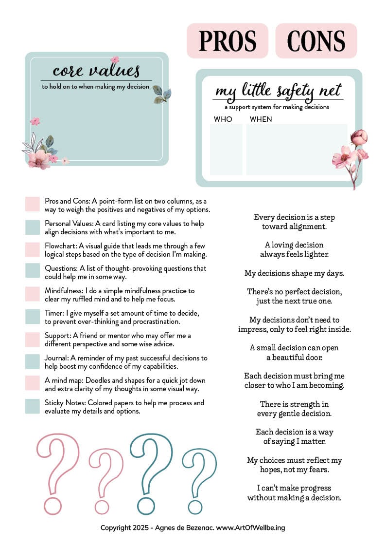 That’s why I created these simple, printable pages—to make the whole process feel lighter, clearer, and even a little fun. They’re designed to become your very own decision-making toolkit, something you can return to whenever you’re feeling stuck.
