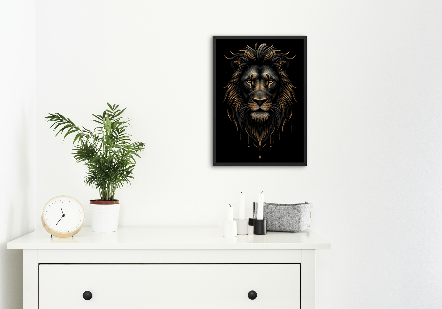 This majestic lion artwork is perfect for modern homes, offices, bedrooms, living rooms, or masculine interiors. The deep dark tones and striking expression create a strong focal point that symbolizes strength, leadership, and confidence.