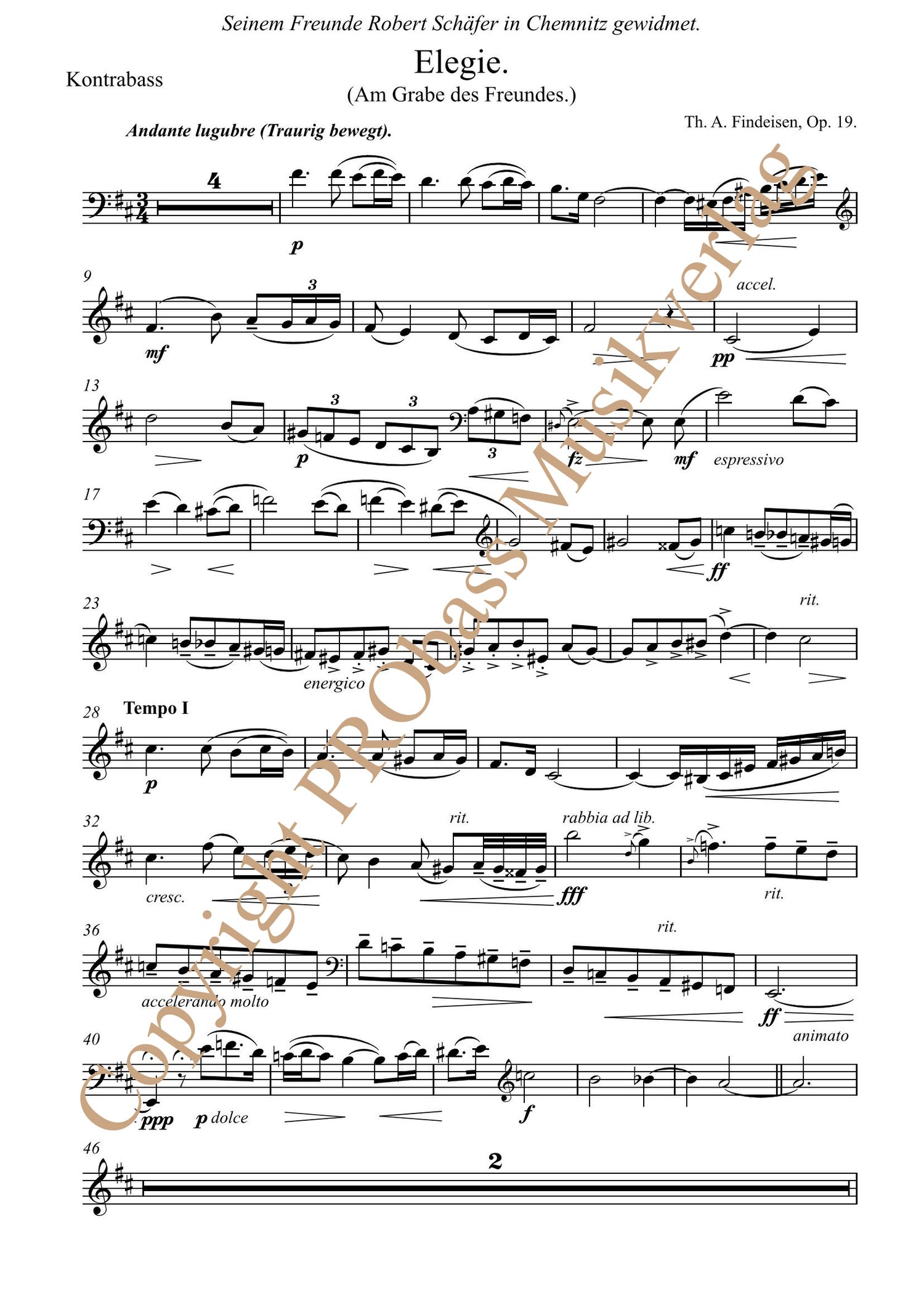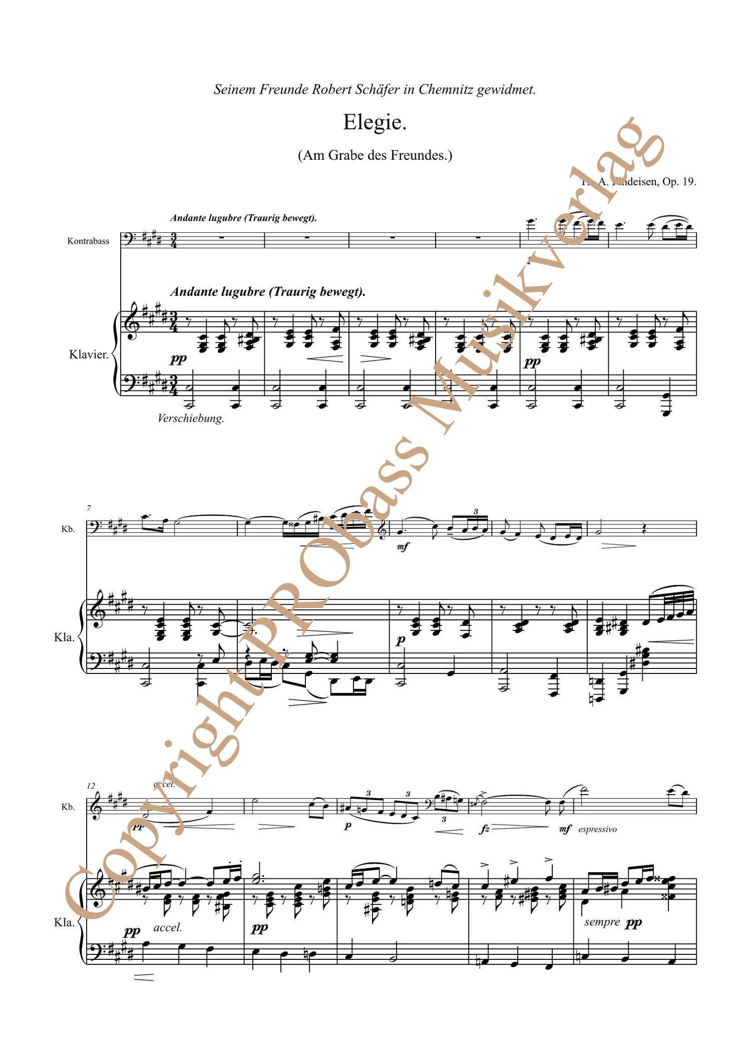 This piece is subtitled "Am Grabe des Freundes" (At the Grave of a Friend) and thus clearly indicates what the one-movement piece of music is about. The dedication also provides further information about the motivation behind the composition: "Dedicated to his friend Robert Schäfer in Chemnitz". It is a funeral dirge on the double bass, demanding for both the soloist and the accompanying pianist.