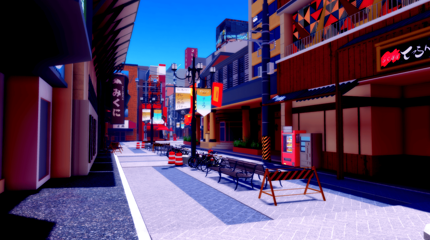 Sentobori City is a highly detailed urban environment perfect for immersive roleplay and storytelling. It features towering skyscrapers, neon-lit streets, bustling marketplaces, and a mix of modern and traditional architecture, blending futuristic aesthetics with a lived-in atmosphere.