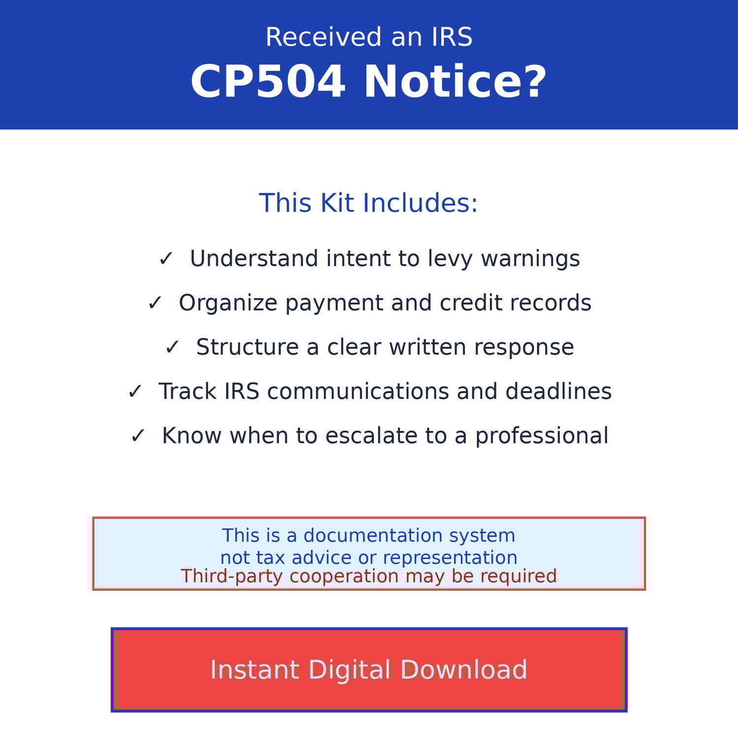 IRS CP504 Notice Response Kit – Intent to Levy Documentation System