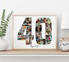 EDITABLE 51 photos, Custom 40th birthday gift, 40th anniversary Photo Collage Template Gift, Number Collage, 40 years