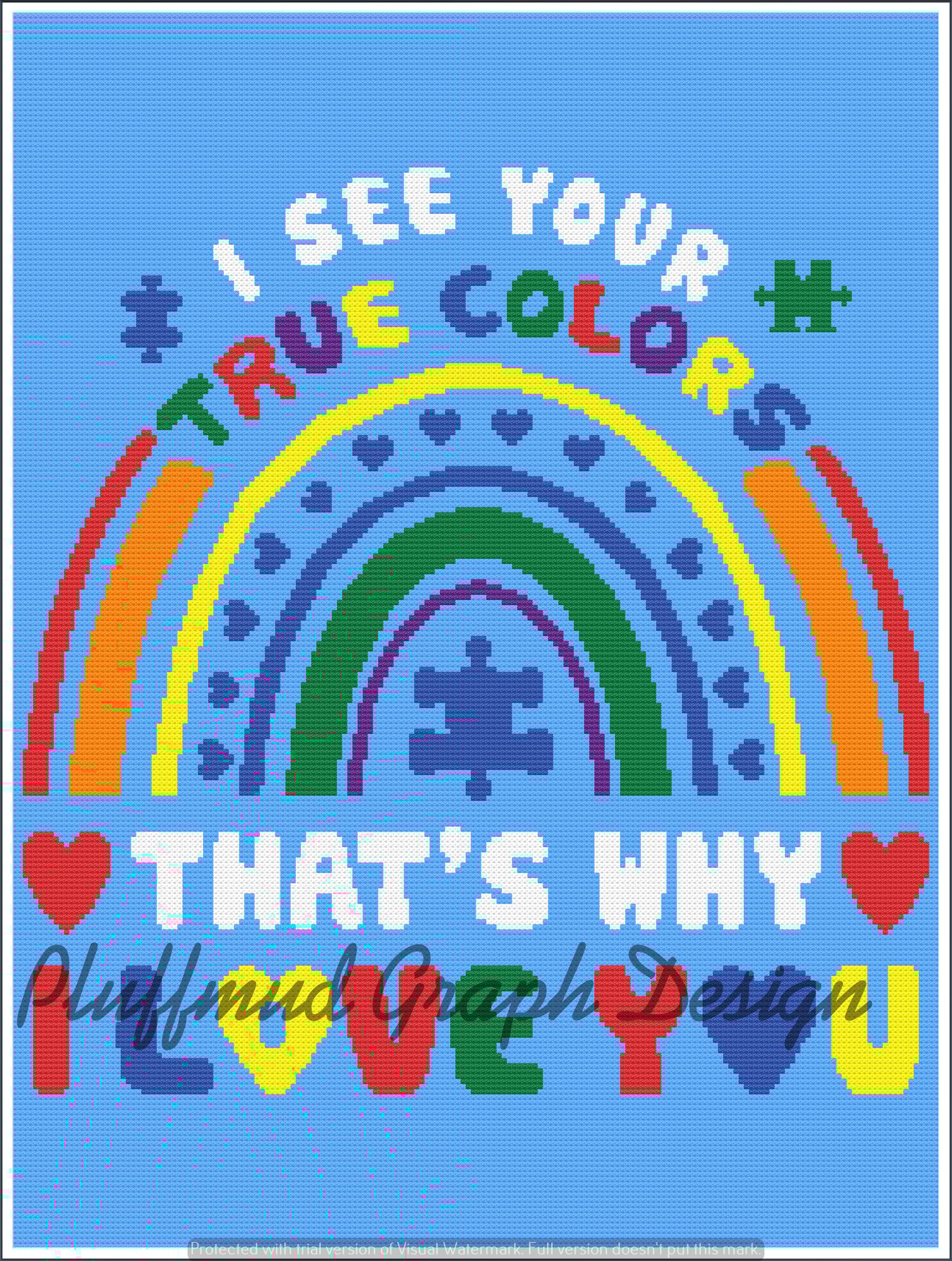 You may post progress or completed work in Gosh Yarn it! and/or other groups, please post a link back to Pluffmud Graph Design, to the graph or mention Pluffmud Graph Design