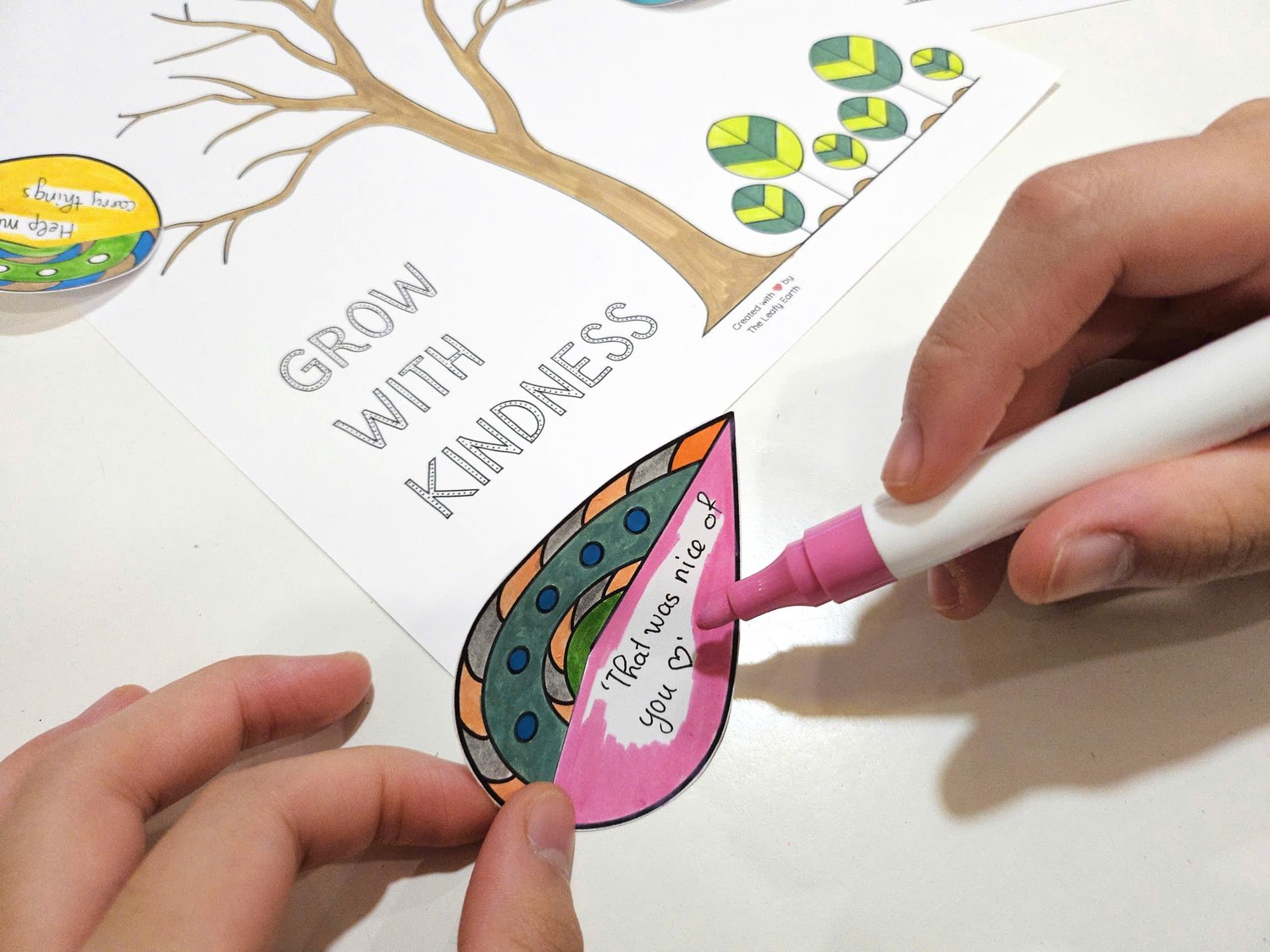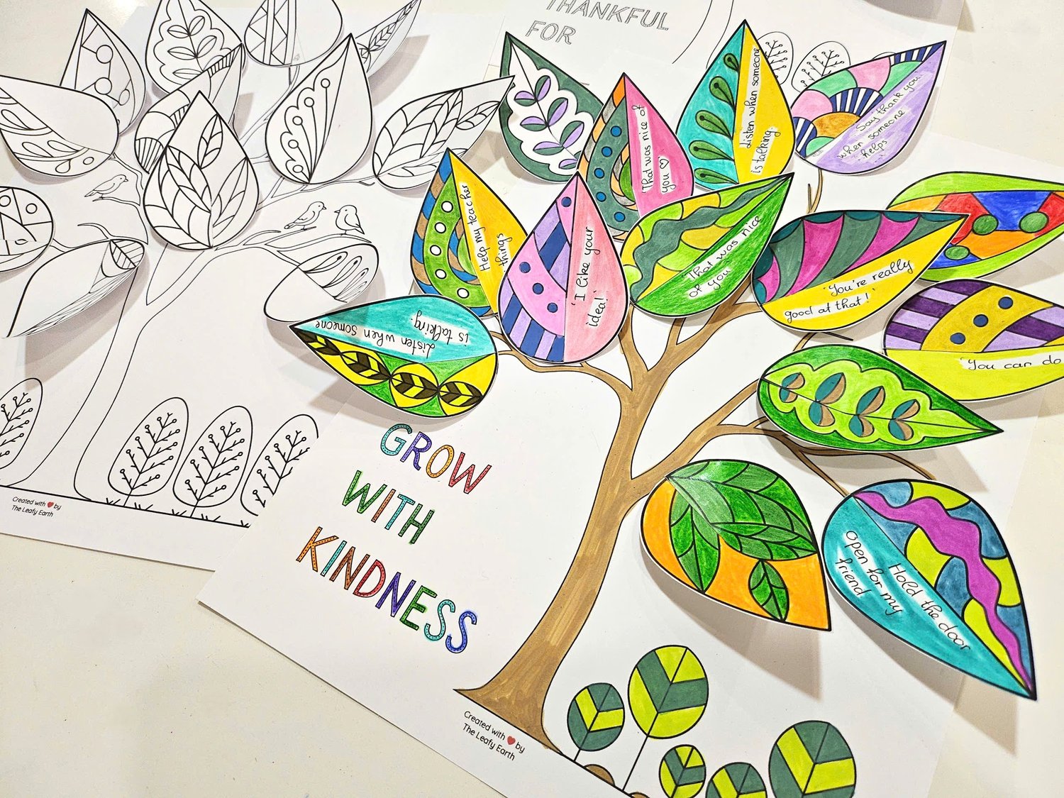 ✿ This set invites kids to write kind words, caring actions, or notes of thankfulness on the leaves, then glue them onto the tree to decorate.