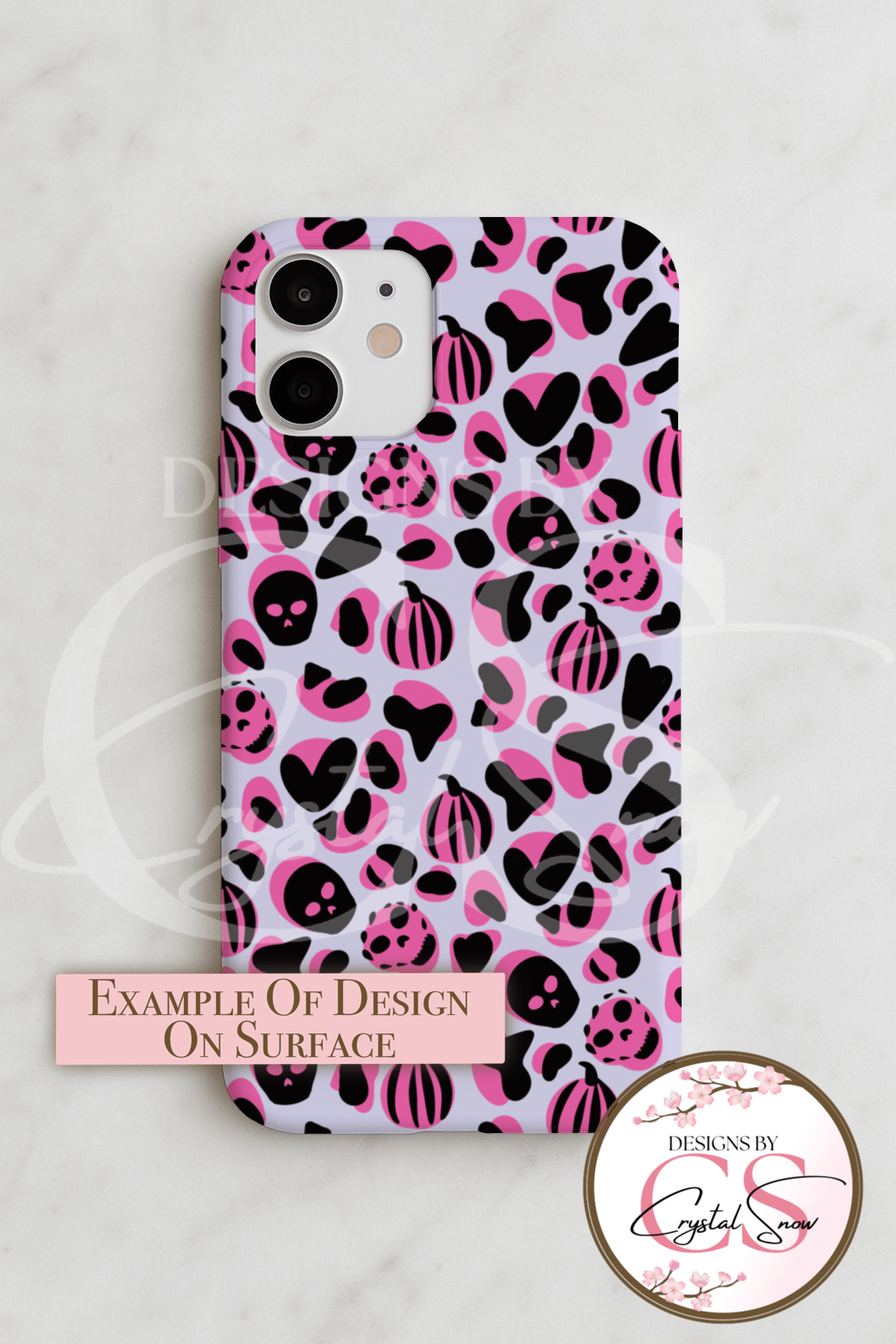 This playful seamless pattern combines wild cheetah print with Halloween icons like pumpkins, skulls, and hearts in pink, black, and lavender hues. “Boo-tiful Cheetah” is the perfect mix of edgy and adorable, making it ideal for seasonal crafting projects.