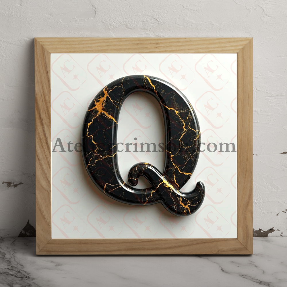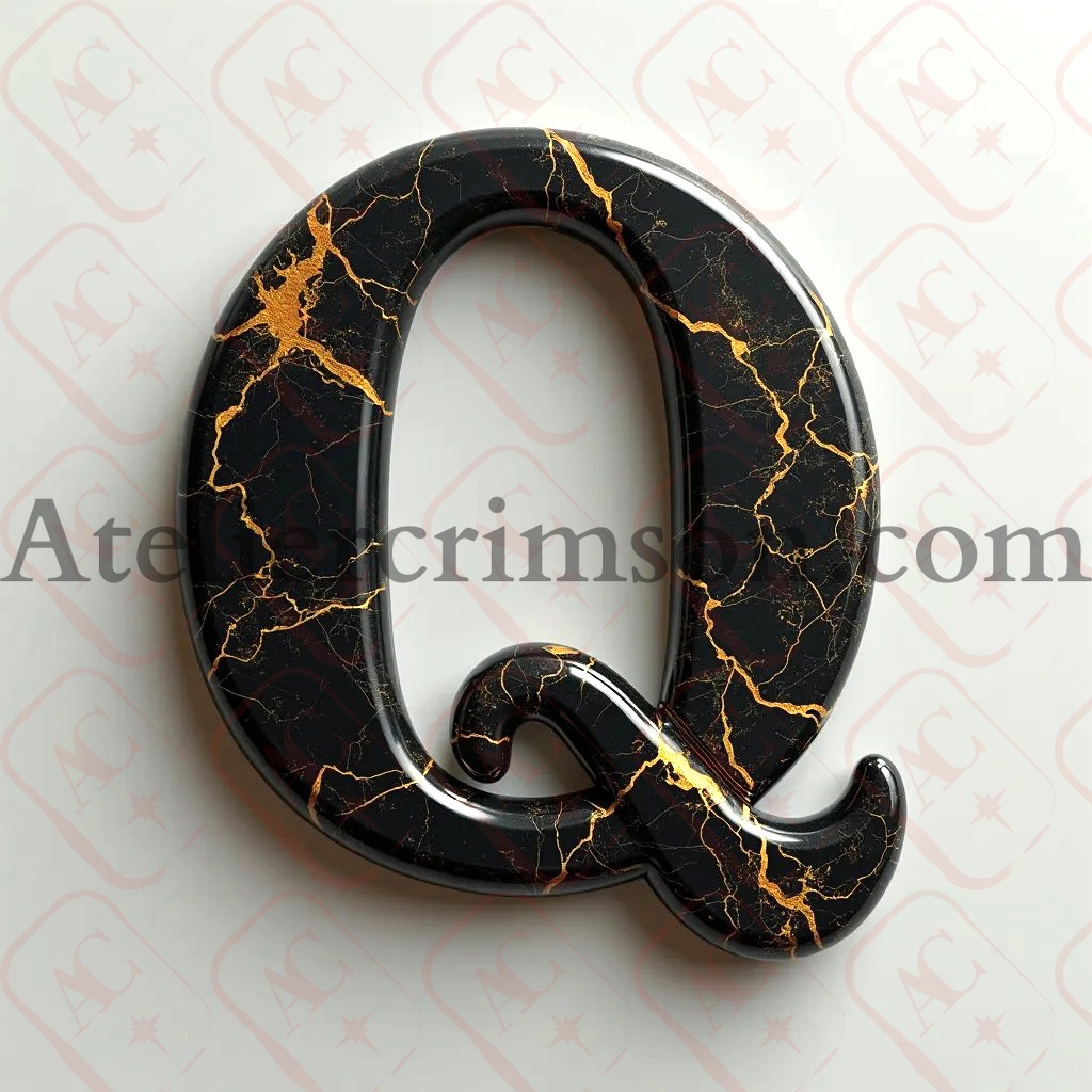 The letter Q luxury black marble and gold. Download now this high quality AI-generated digital image.
